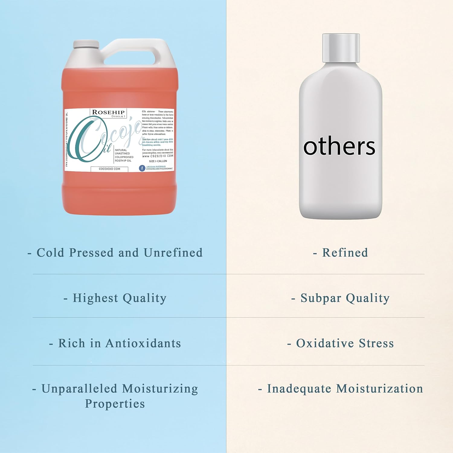 • NOURISHING – Rosehip Oil contains Vitamins A, B, C and D, which are antioxidants that promote radiant, youthful skin and lustrous hair. These antioxidants make Rosehip Oil soothing to use, even on sensitive skin, so that all skin types are able to benefit from Rosehip Oil.