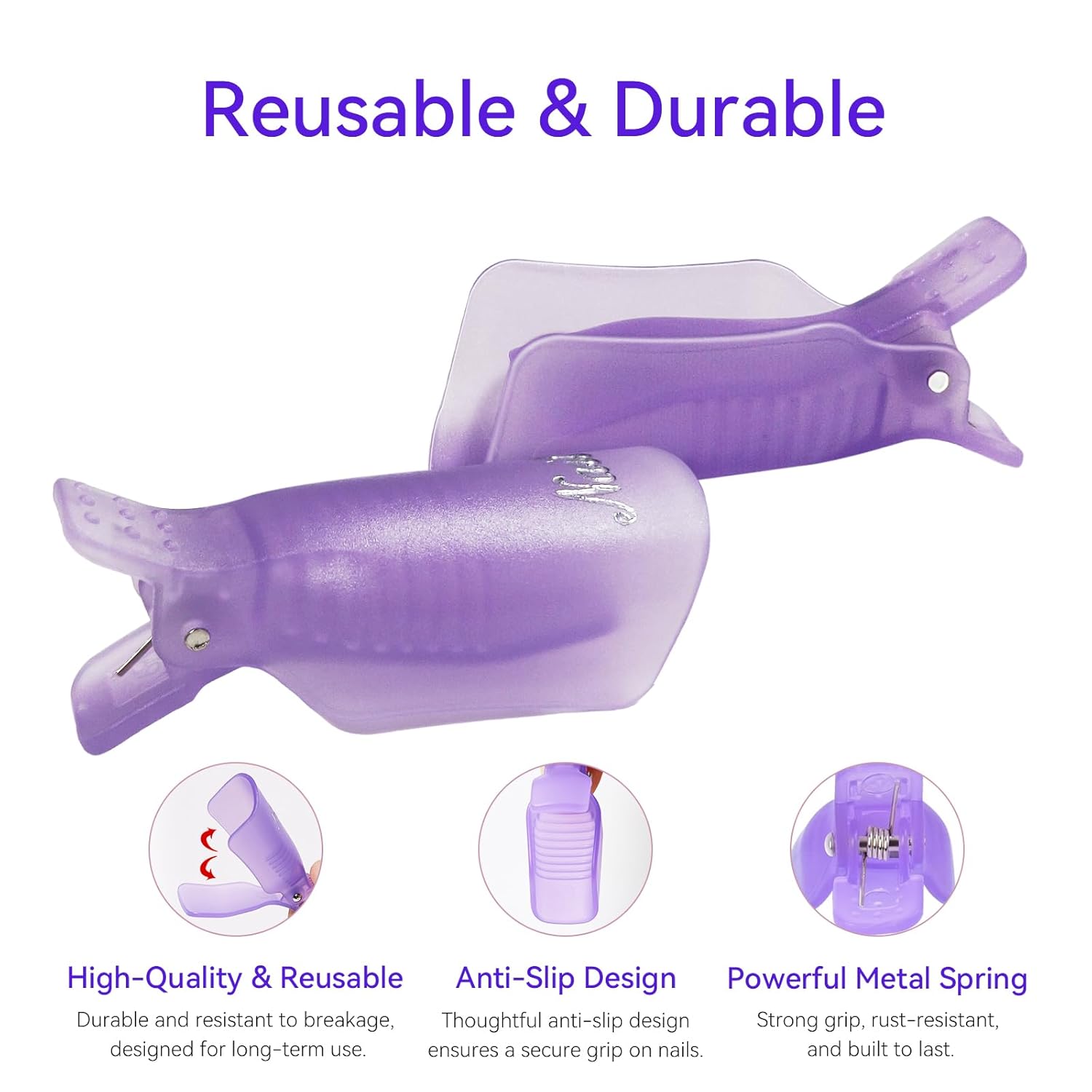 • 【Reusable Gel Nail Remover Clips for Fingers & Toes】Made from durable ABS plastic, the clips are designed for both fingernails and toenails. They fit snugly without pressure, ensuring a secure anti-slip grip during soaking and allowing for mess-free, repeatable use.