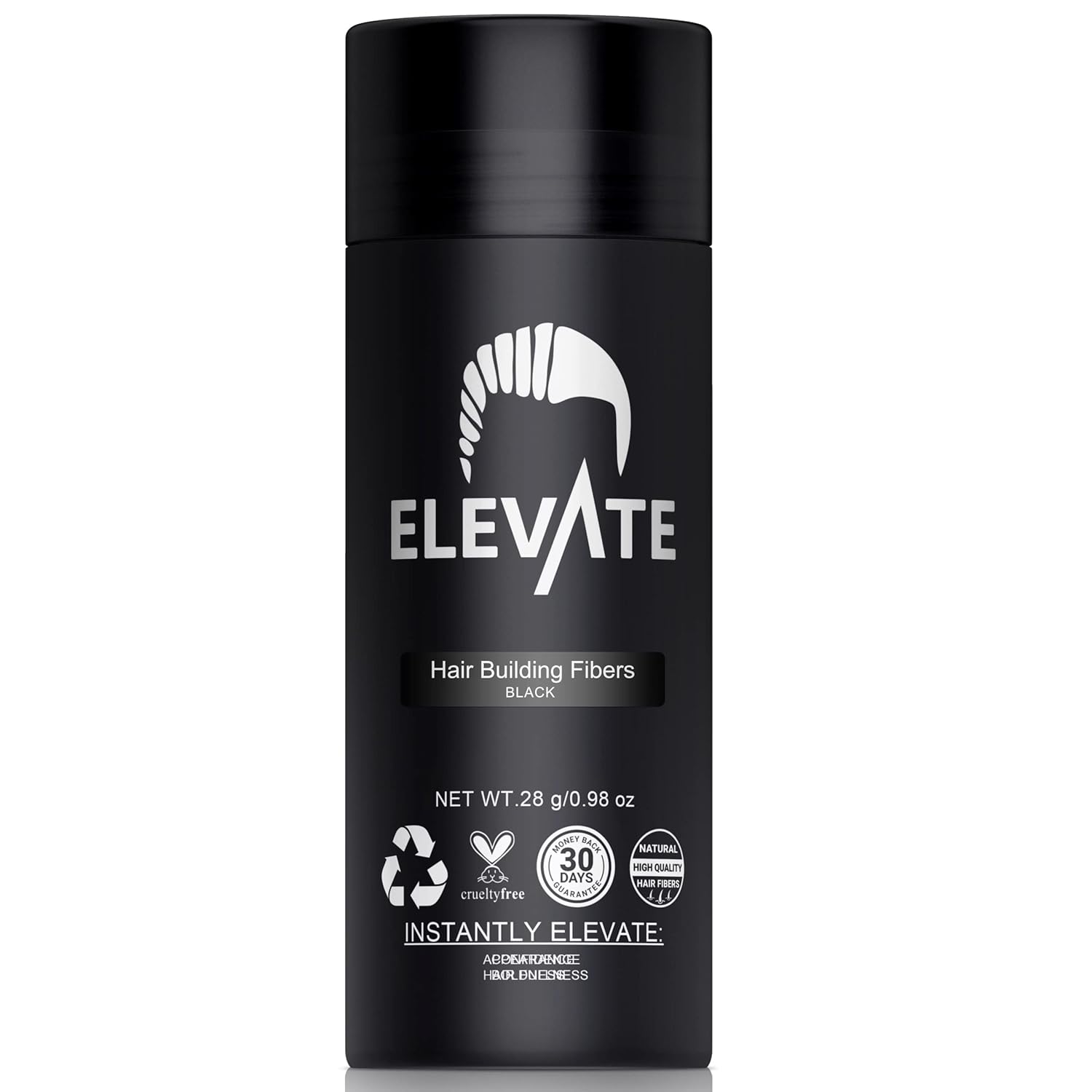 ELEVATE Hair Fibers to Instantly Thicken & Completely Conceal Thinning Balding Areas Loss in 30 Seconds for Men & Women (BLACK) 28g Size - 100% Natural & Undetectable Keratin Fibers