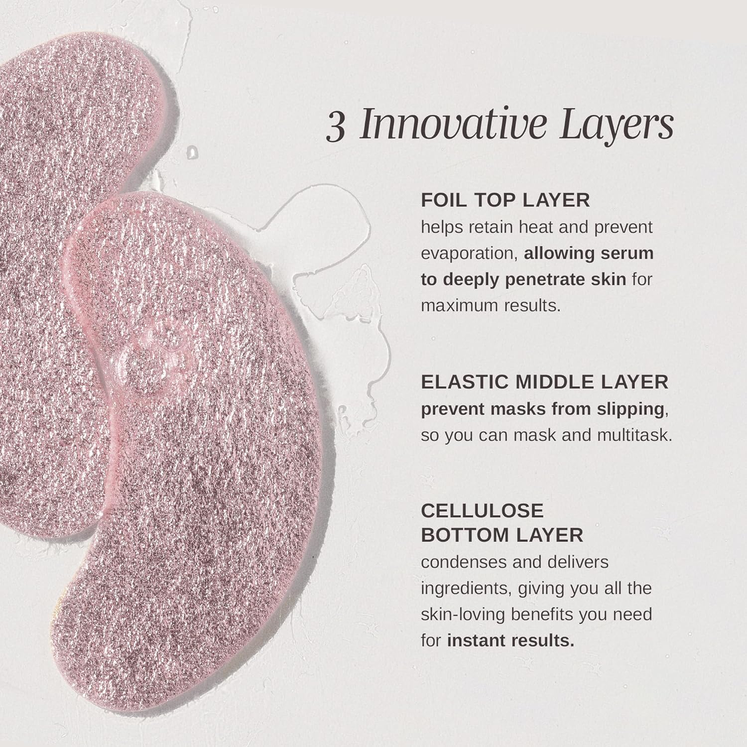 • Multi-Layer Absorption Technology - The top layer of foil helps prevent evaporation, allowing the serum to deeply penetrate the skin. Its elastic middle layer prevents the eye mask patches from slipping, while the bottom layer of cellulose fiber delivers key ingredients to the delicate under eye area to deliver maximum skin-loving benefits and a smooth skin texture.