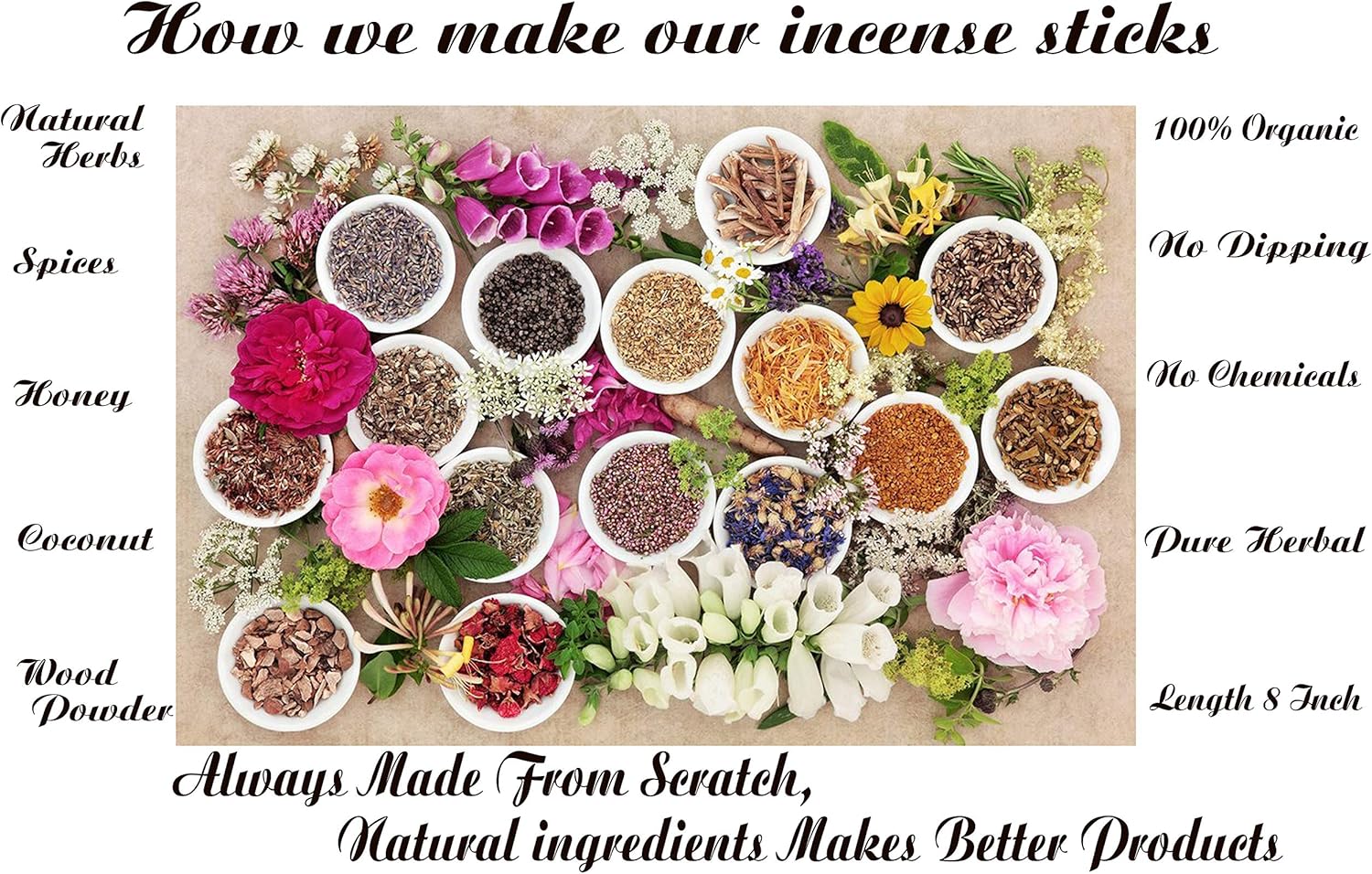 • Guarantee 100% pure herbal ingredients without any chemical fragrance. You can free return for any reason.