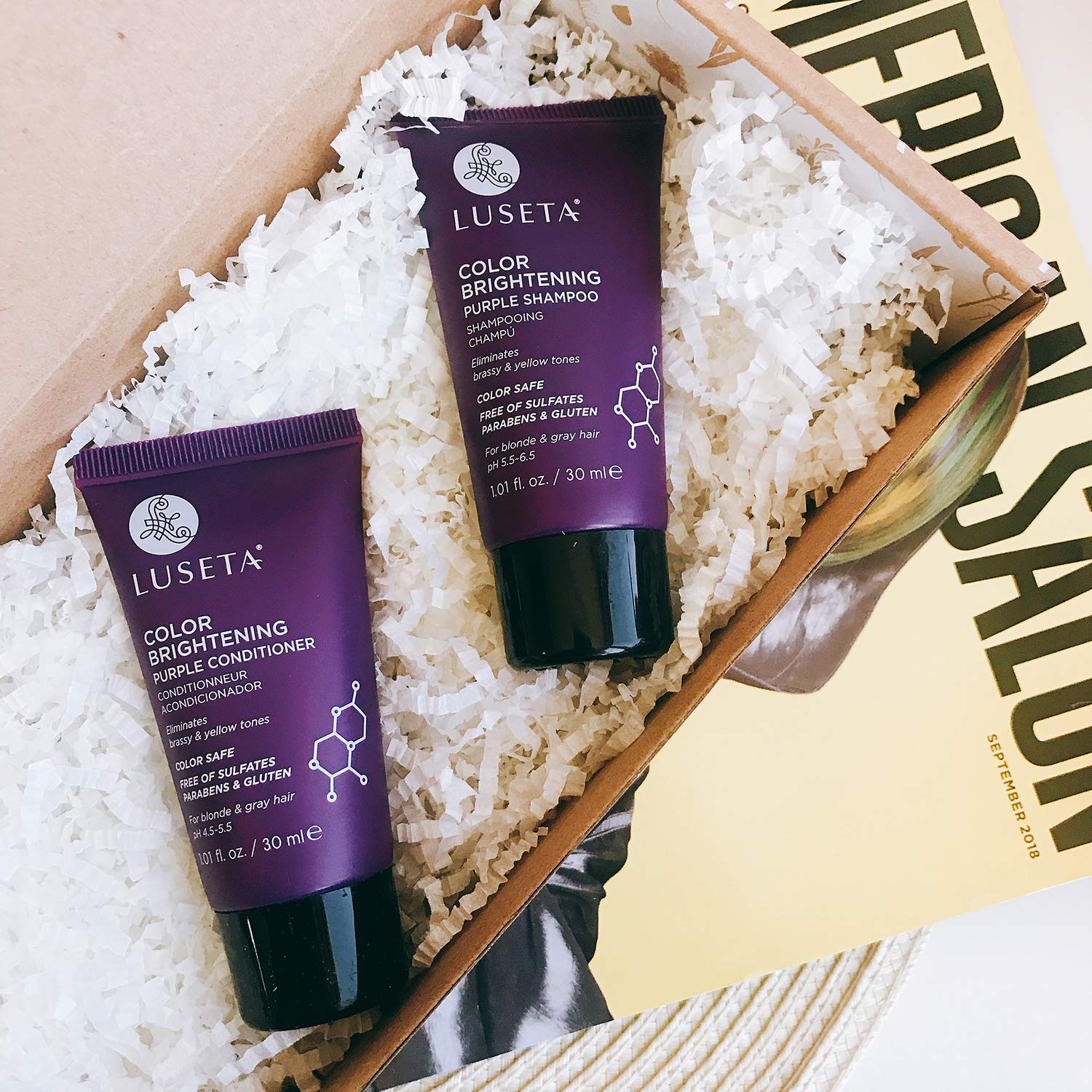 Luseta Color Brightening Purple Shampoo and Conditioner Travel Kit for Blonde and Gray Hair -Infused with Cocos Nucifera Oil to Help Nourish, Moisturize and Condition Hair, 2x1.01oz