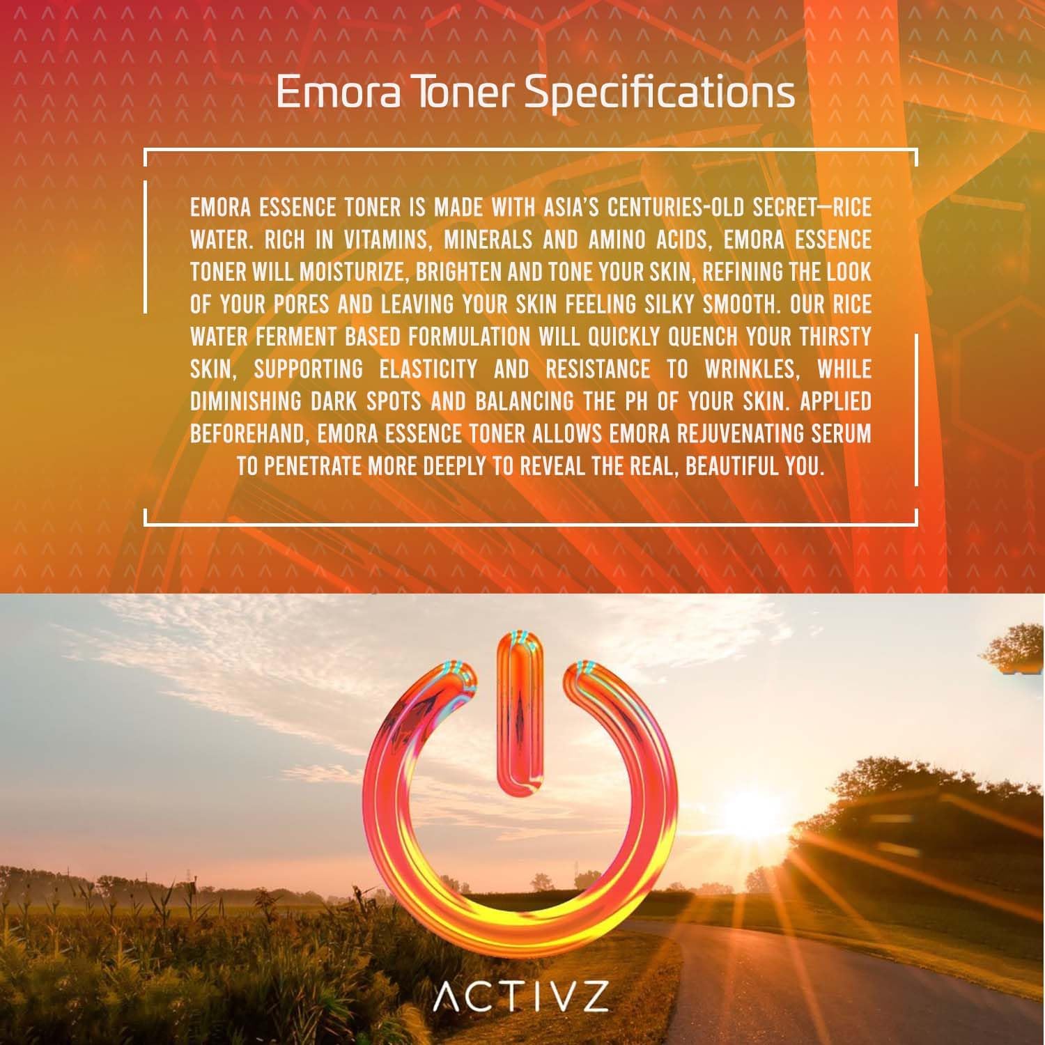 • Enhances Product Absorption: Activz EMORA Essence Toner serves as a great prepping step in your skincare routine, enhancing the absorption of follow-on products and nutrients ensuring maximum efficacy.