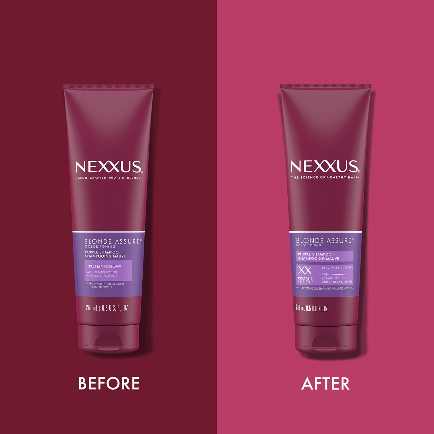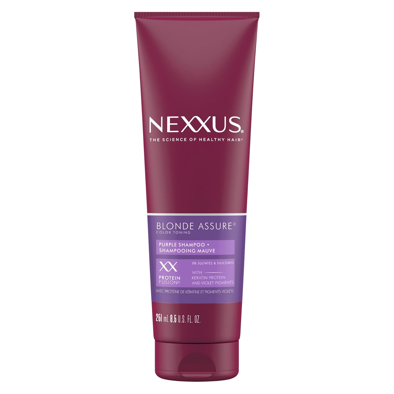 • PURPLE SHAMPOO TO BALANCE BRASSY TONES: Nexxus Blonde Assure Purple Shampoo for blonde, silver, or platinum hair helps neutralize brassy tones and provide long-lasting color care & color vibrancy