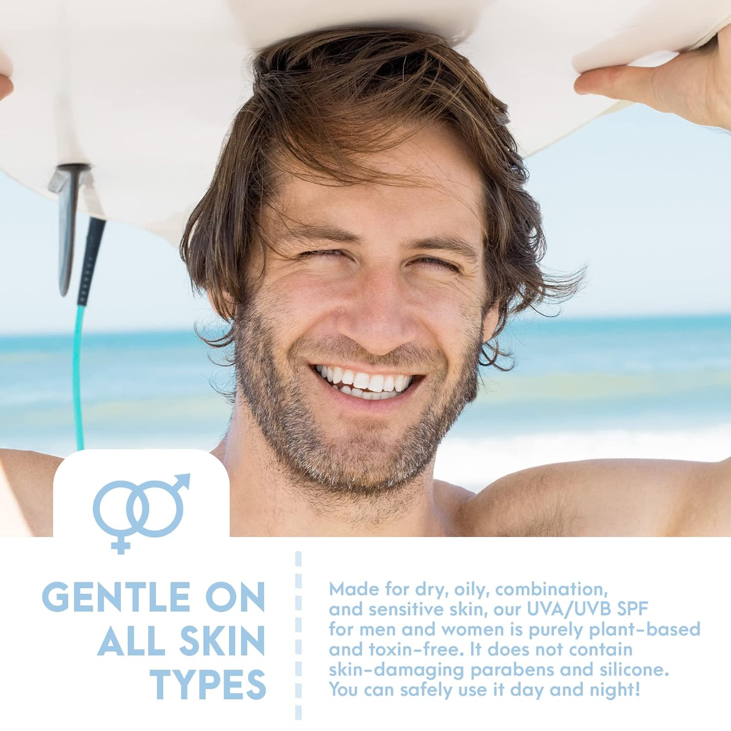 • BLOCKS HARMFUL SUN RAYS - Get full-on sun defense with a body and face sunscreen! This SPF lotion shields your skin with a physical barrier made of active minerals, zinc oxide. It encourages safe and even tanning by reflecting UVA/UVB rays like a mirror.