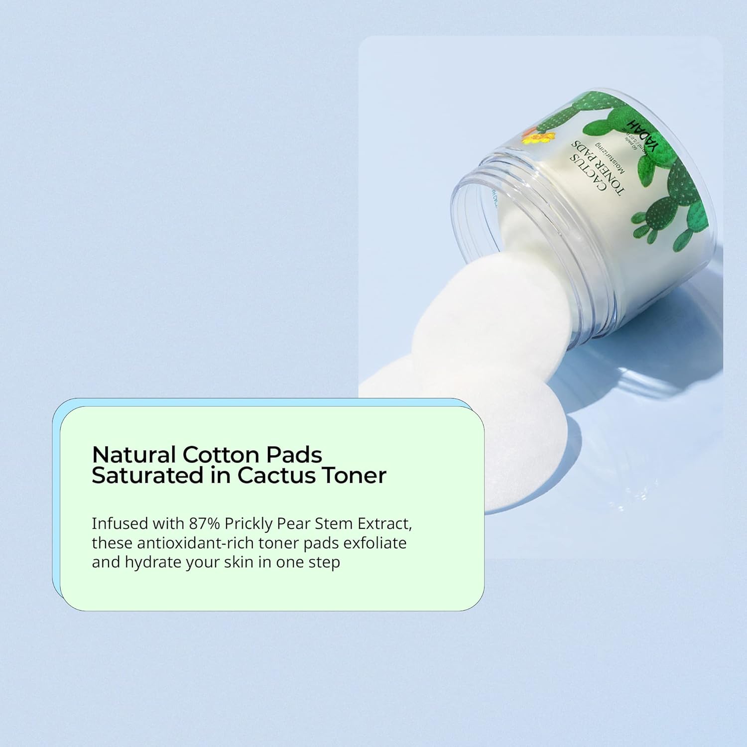 • HYDRATING & EXFOLIATING: Instead of using Purified Water we went a step further and used Cactus Extract as our ingredient. This allowed us to contain over 87% of Cactus Extract in our Cactus Toner Pads. With special exfoliation/healing ingredients such as Witch Hazel Extract and Cica that effectively wipe off waste to start your skincare routine.
