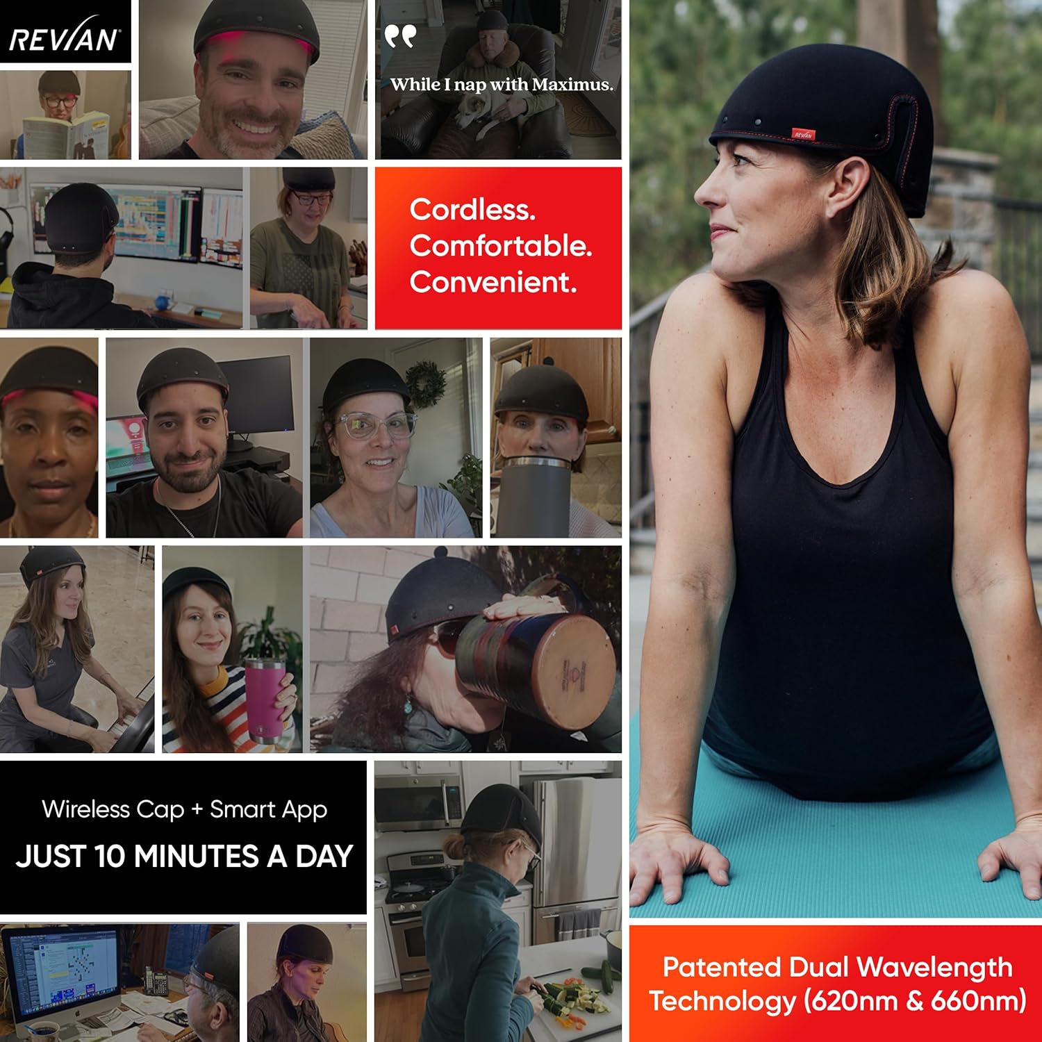 REVIAN Red Cap Hair Growth Device LED Wireless FDA Cleared Red Light Therapy for Hair Regrowth, Hair Loss Treatment for Men + Women, Thinning, Regrowth & Alopecia with Smartphone App