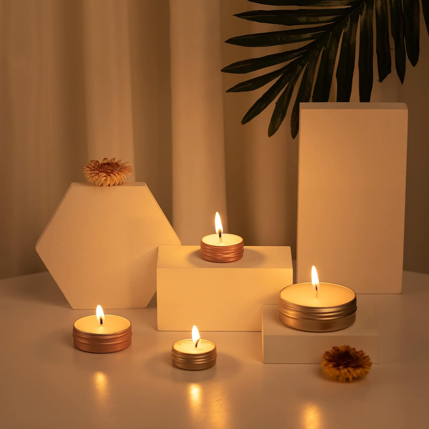• PACKAGE INCLUDE: 32pcs rose gold screw top round tin cans + 32pcs blank marking labels