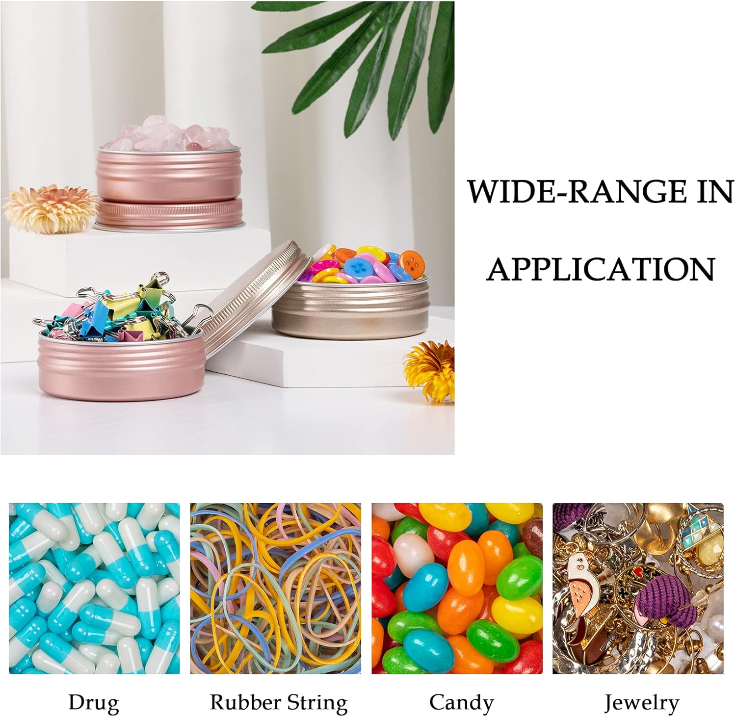 • APPLICATION: Our food-grade aluminum tin containers are dynamic storage jars, ideal choice for storing a wide variety of items like crafts, lip balms, lip gloss, mini candles, cosmetics, sample pots, herbs, handmade lotions