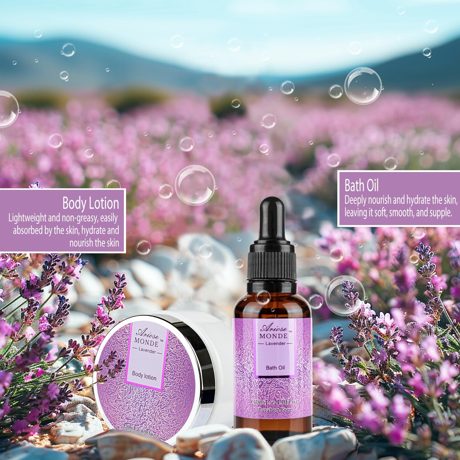 • LONG LASTING FRAGRANCE: Sweet and beloved lavender scent, using the principle of fragrance retention by essential oils, gently cleanses with a pampering lather to leave your skin moisturized long after the bath. Pamper yourself with this luxurious collection of spa products