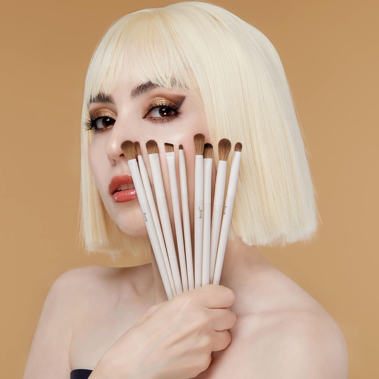 • Get your desired eye look in minutes with this all-inclusive set:All eye brushes have been constructed by hand and widely analyzed. We hand-picked 10pcs the most indispensable detailed eye makeup brushes: 4pcs blending brushes, 3pcs eyeshadow brushes,a precise eyeliner brush,a duo concealer brush and a highlight brush to function for a different makeup purpose to ensure you’ve got all brushes necessary to make perfect eye makeup.
