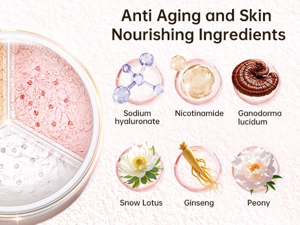 • 【3 COLOR EVEN SKIN TONE】PINK: adjust the red skin tone, modify red blood, red acne; YELLOW: helps minimize the appearance of pores, fine lines, and wrinkles.; WHITE: Powerful oil-control powder for a fresh, non-greasy finish. Use three colors together to achieve even skin tone and create a perfect basic makeup.