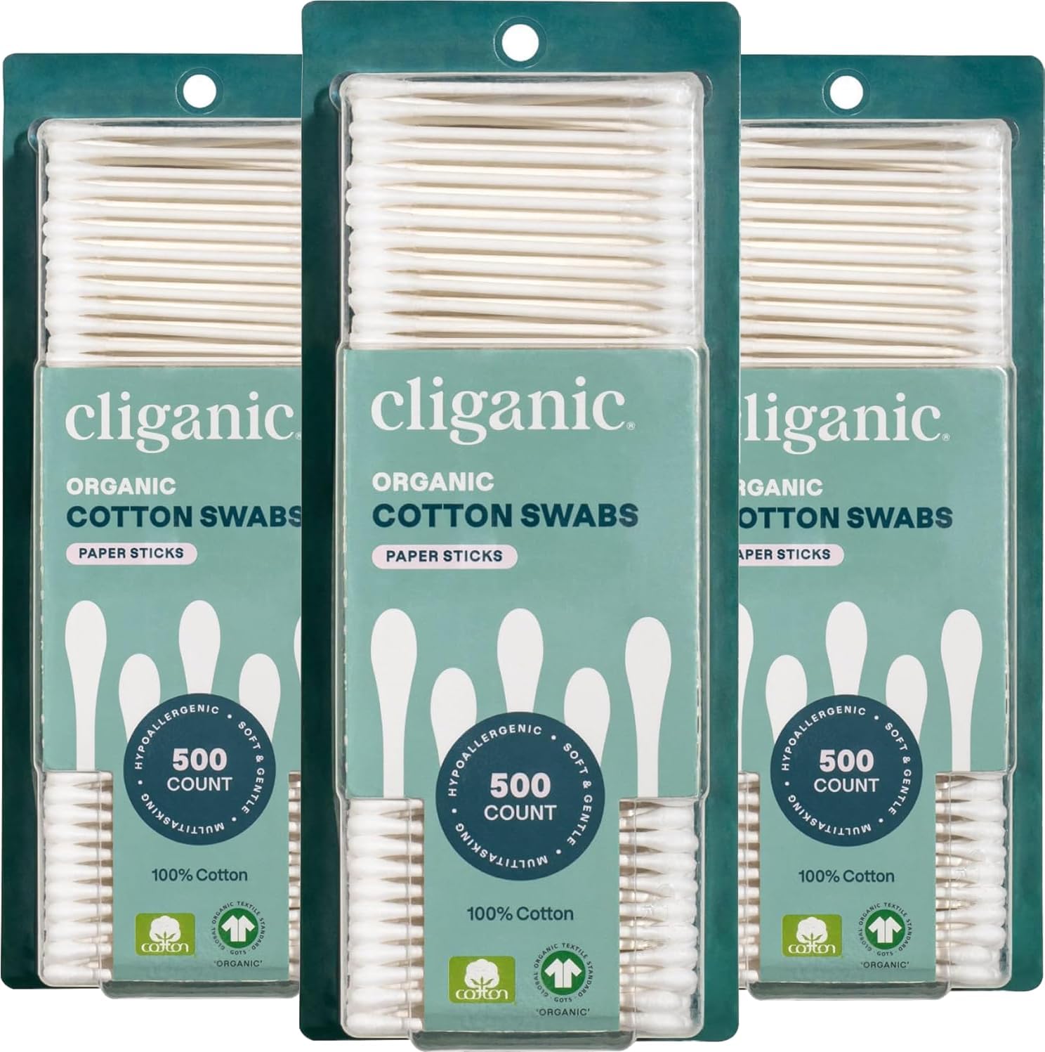 Cliganic Organic Cotton Swabs, 1500 Count - 100% Pure Natural Cotton, Chlorine-Free Hypoallergenic, Soft, Gentle & Absorbent Buds