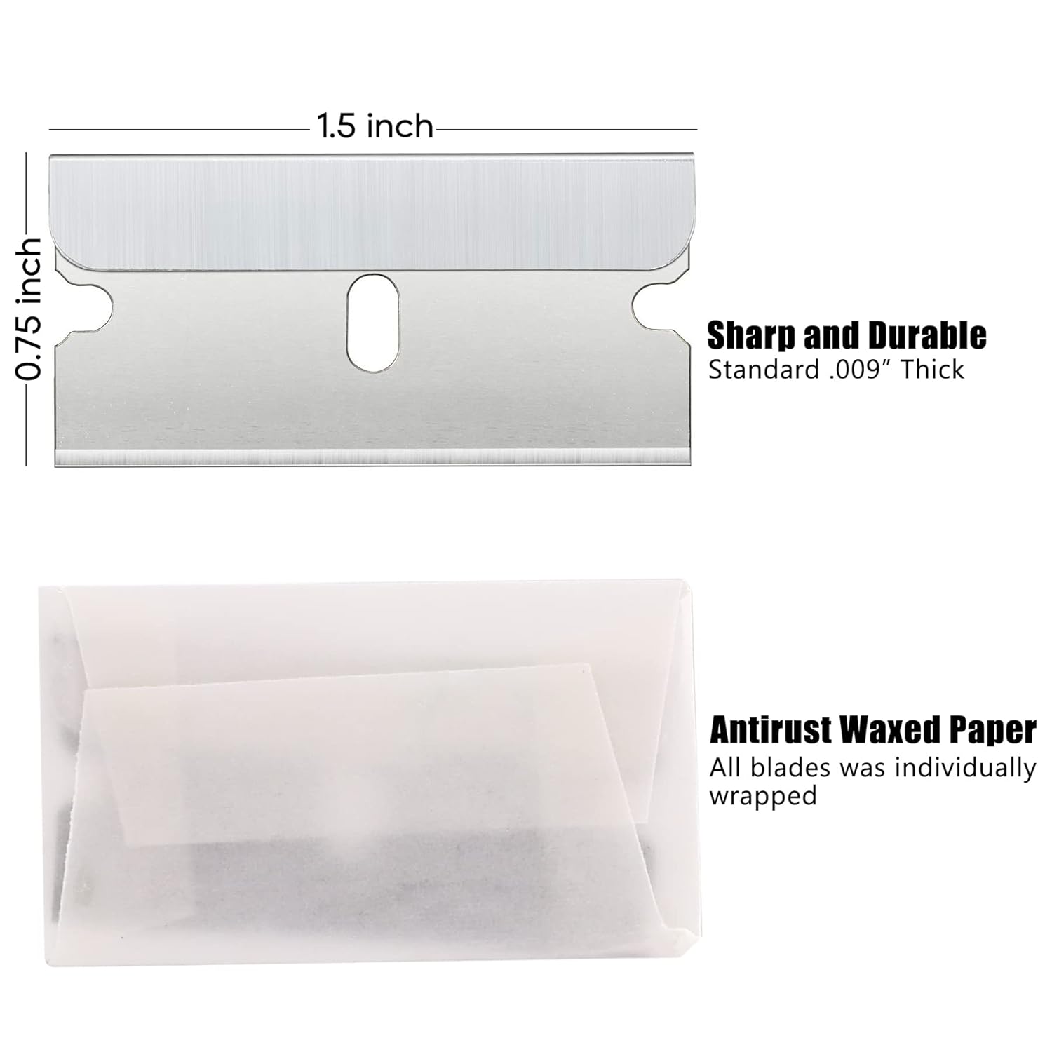 • Includes 200 total 1.5" x 0.75" thick steel single edge razor blades