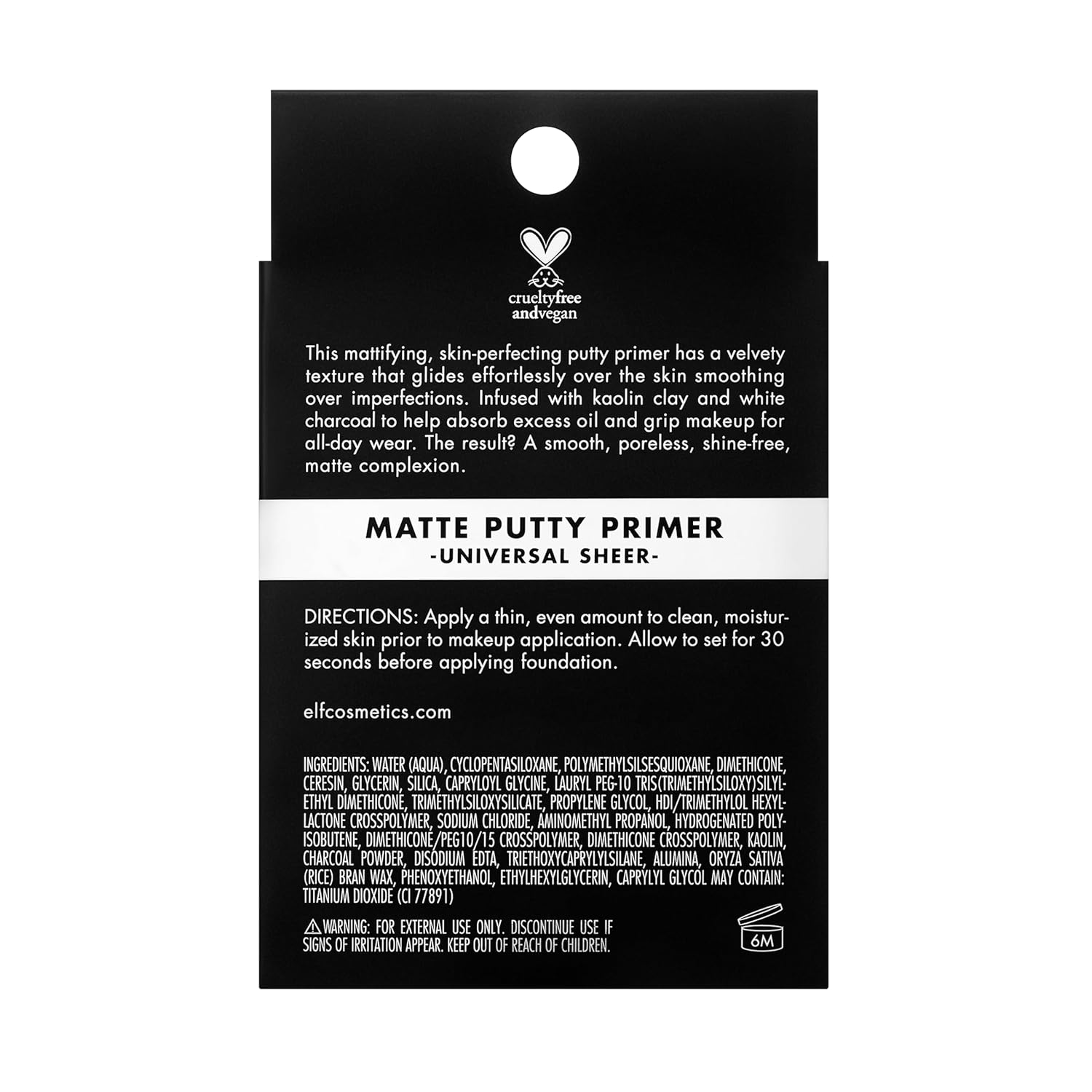 • SHINE FREE FINISH: This skin perfecting putty primer is infused with kaolin and white charcoal. Velvety texture glides effortlessly over the skin, smoothing over imperfections for a poreless effect
