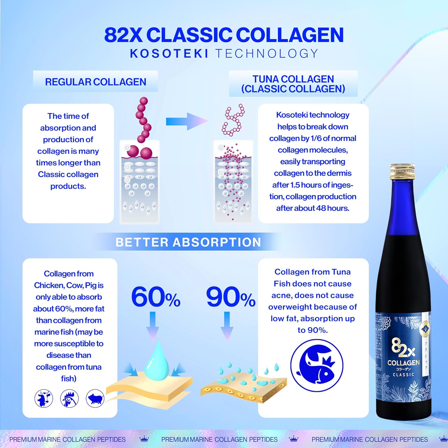 82X Classic Collagen - Marine Fish Tuna Collagen Peptides Liquid Drink for Skin Hair Nails from Japan with 82 Fermented Plants, Vitamins, Minerals & Supplements