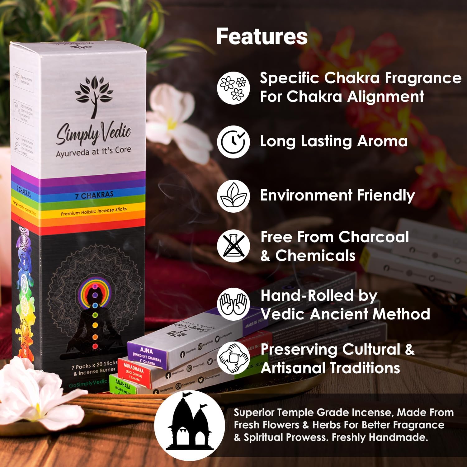 • ✅ Align & Awaken Your Chakras Naturally: Each Simply Vedic Chakra Incense Stick is expertly blended to target one of the 7 energy centers—Root, Sacral, Solar Plexus, Heart, Throat, Third Eye, and Crown. Perfect for chakra alignment, spiritual awakening, and inner balance during yoga, meditation, or reiki practice.