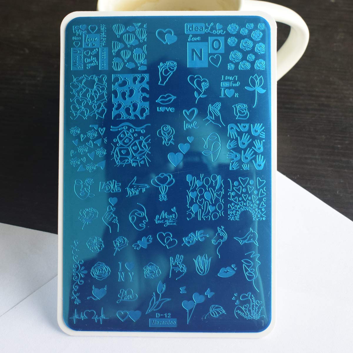 • PACKAGE CONTENTS: 2pcs Large Nail Art Stamp Template Valentine's Day Image Plates With Fire/skeleton/skull/flame/ Love/balloon/leaf/lip/rose/footprint/palm Design. Many Unique Valentine's Day Patterns You Can Choose From