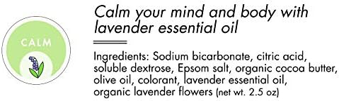 • 2.5 OUNCE BATH BOMBS: This set includes 12 of our CALM bath bombs packaged in pairs. Our CALM bath bombs are made with relaxing Lavender essential oil and lavender flowers