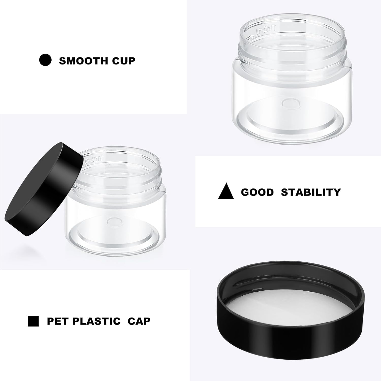 • Quality material: the 2.5 oz plastic jars with lids are made of quality clear plastic, without odd smell, does not contaminate your skincare products, stable, high temperature resistance, a black plastic cover with lid, sealed storage and leak proof