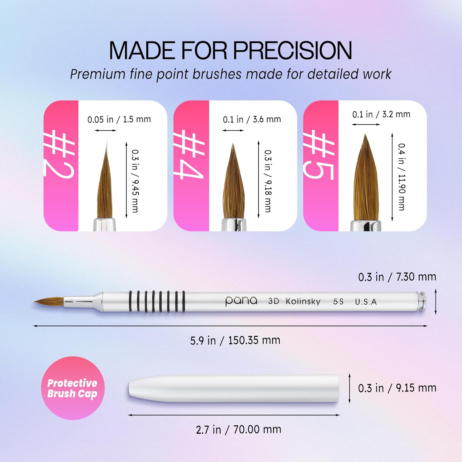 PANA 3D Kolinsky Acrylic Nail Art Sculpture Brush with Silver Metal Non-Slip Grip Handle for Manicures 3D Nail Art Flower Designs (Size #5)