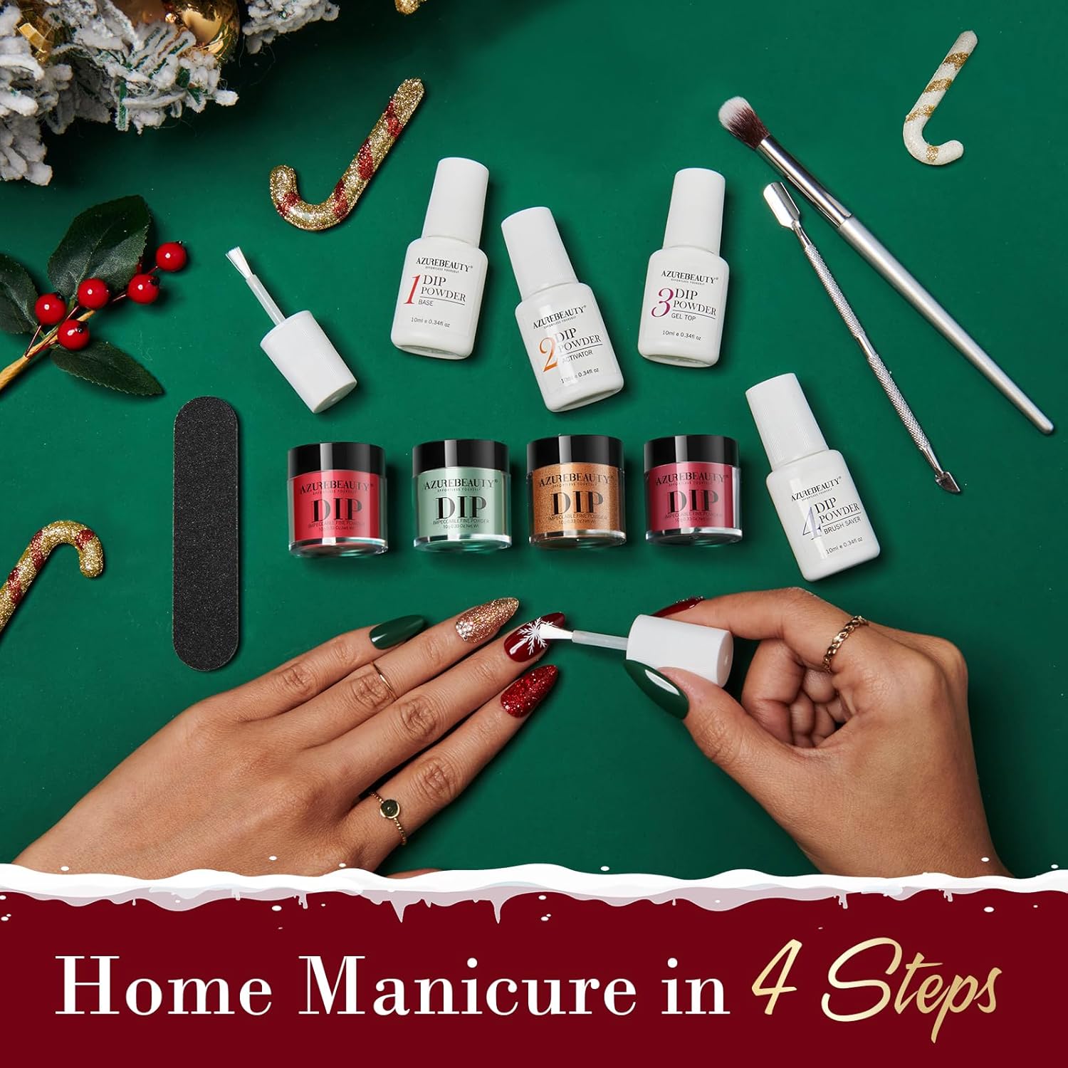 AZUREBEAUTY 31Pcs Dip Powder Nail Kit Red Green Glitter White 20 Colors Acrylic Dipping Powder Liquid Set with Top/Base Coat Activator for French Nails Art DIY Salon Christmas Gift