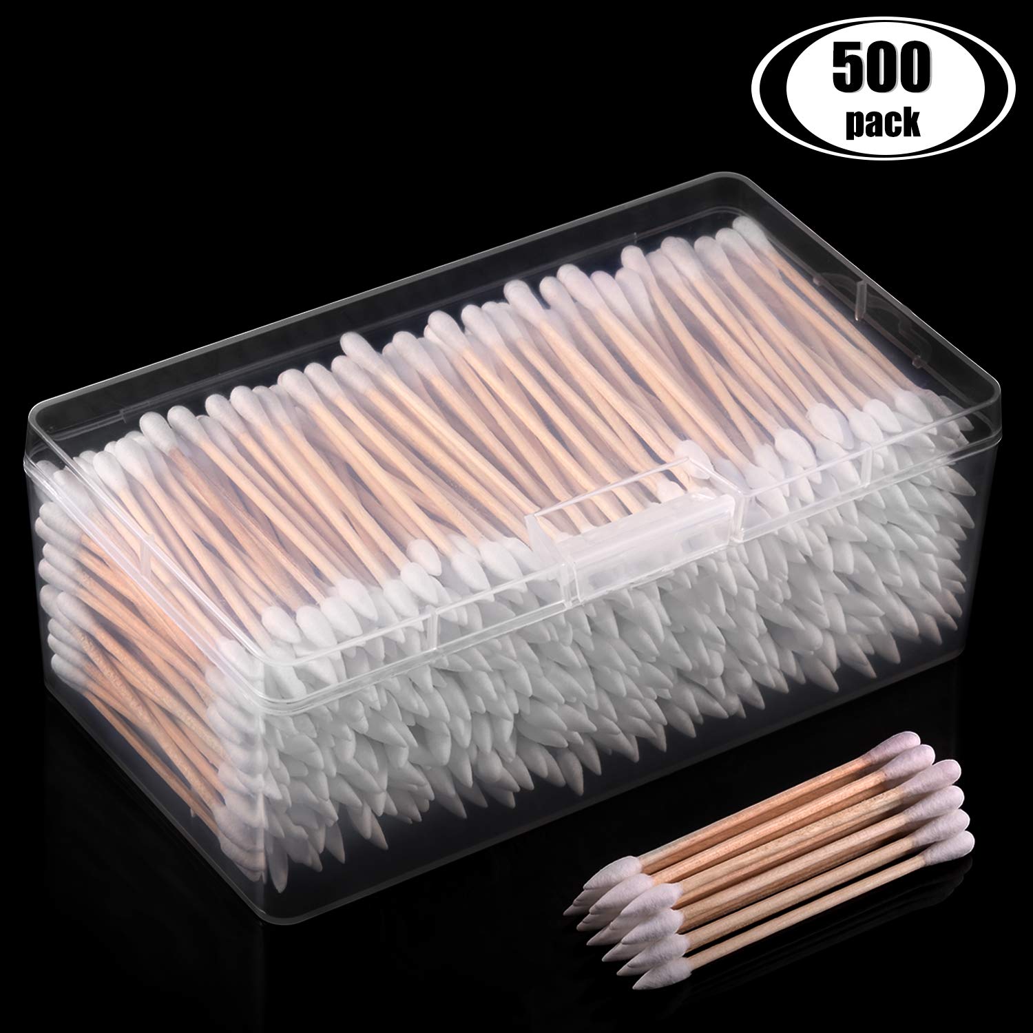 Norme 500 Pcs 3 Inch Gun Cleaning Swabs Long Cotton Swabs in Storage Box Long Pointed and Round Tip with Wooden Handle Buds for Makeup Baby Pet Care