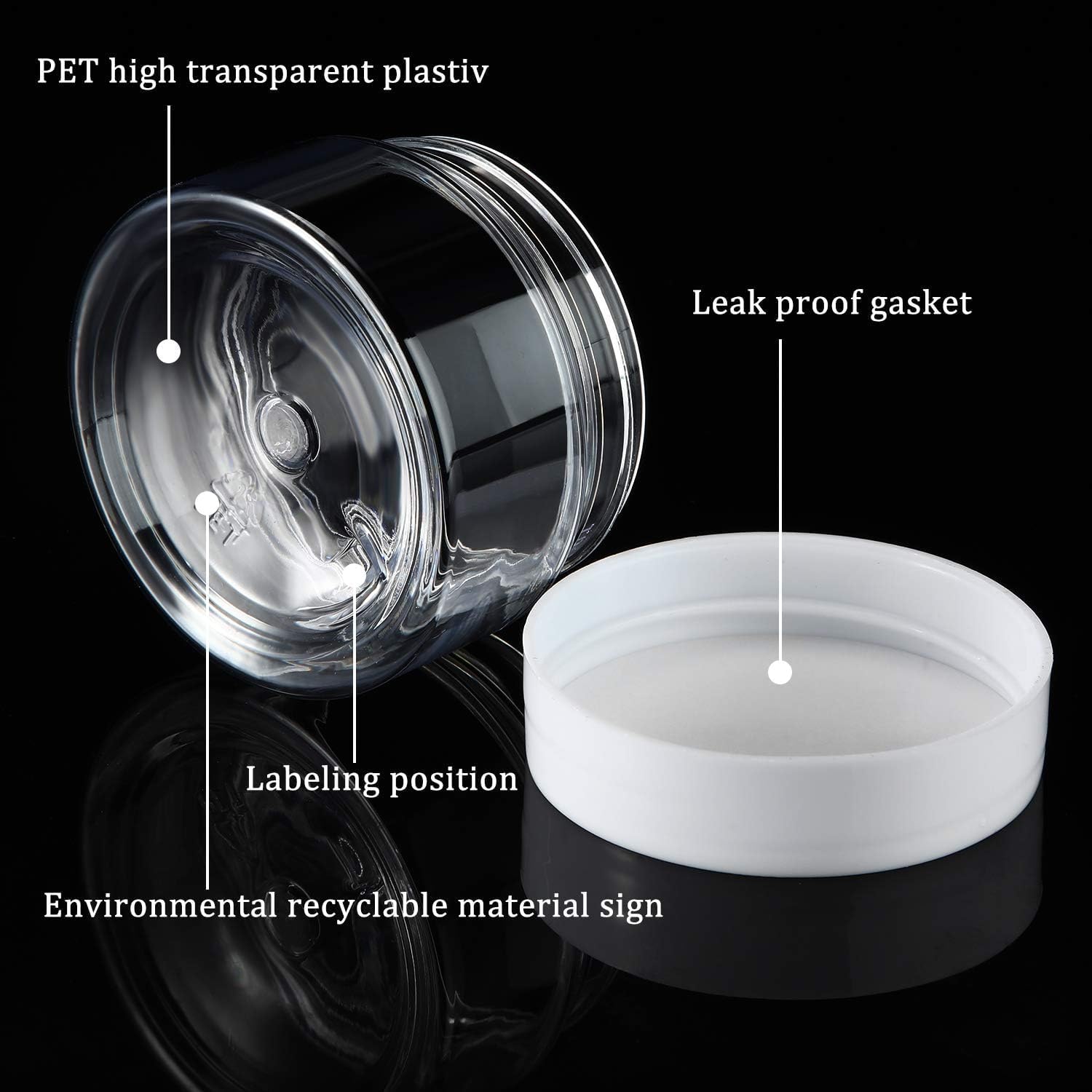 • Product size: each wide-mouth plastic containers jars measure 5.2 cm/ 2.05 inches in diameter, 3.3 cm/ 1.3 inches in height wide, the volume is 1 oz; These are empty jars, great for meal preparation, condiments, DIY crafts, creams, butters, lotions and others