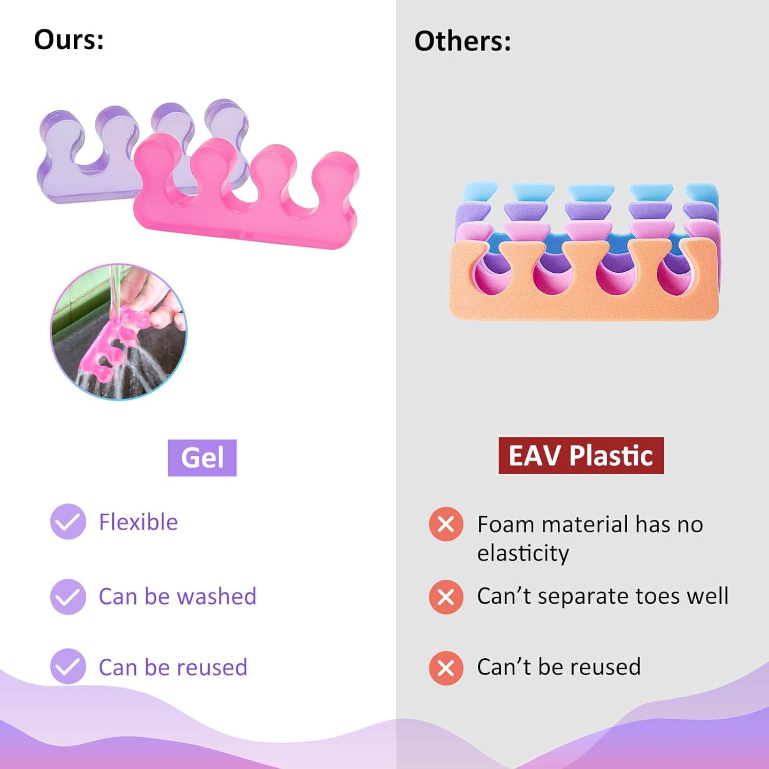 • 🍁【Reusable, easy to clean】 Toe Separators for Pedicurecan be cleaned repeatedly, and jelly material that can be used multiple timesis not easy to deform. Upgraded version of Foam pedicure toe separator. Rinse once with water before use.【Service】:We love our customers,If you are troubled by product problems,please contact us as soon as possible to solve it for you,including return or exchange.