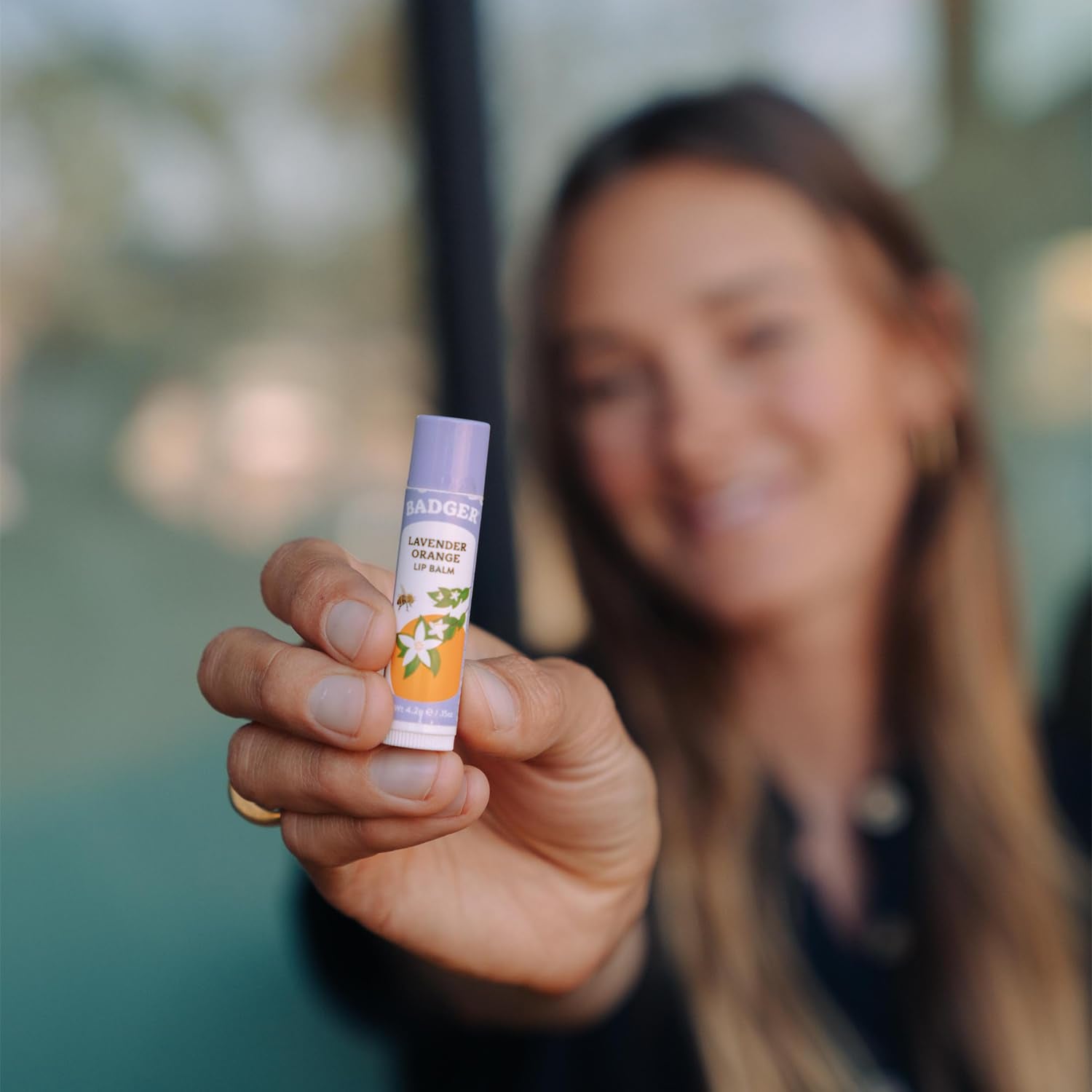 Badger Lavender Orange Classic Lip Balm, 100% Organic Balm, Long Lasting Lip Care w/Light Silky Texture, Uplifting Orange & Calming Lavender Lip Balm, 4 Pack