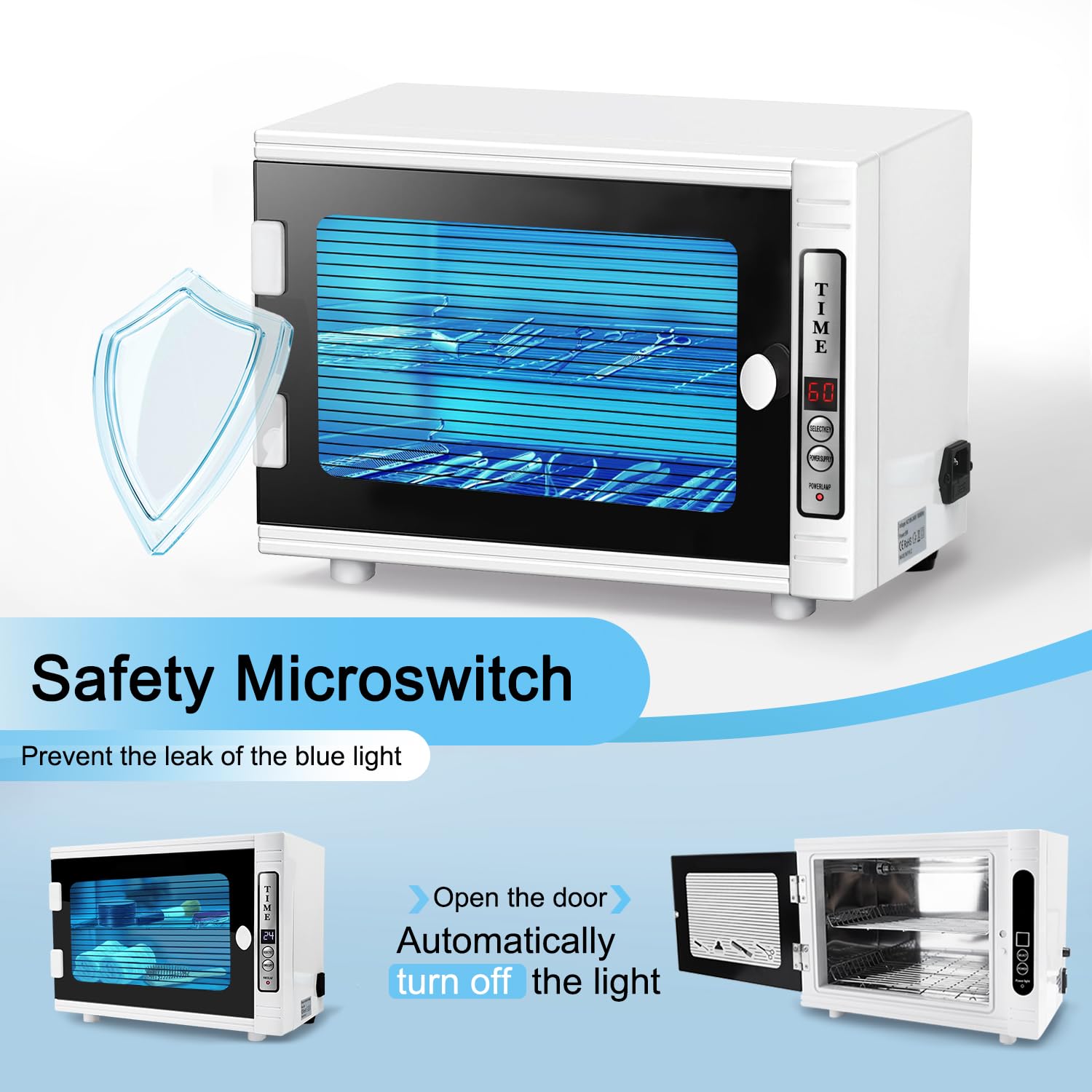 • 💎【Protect Your Healthy and Stuff】The oven pro uses blue light, not heat, so it is safe for all objects. The tight-fitting polarized door means no exposure to people in the room from the lamp. The Cleaning Machine have a smart induction switch which can be automatically turned off the LED light when you open the door cover, it won't hurt your eyes and skin, The inside of the device uses light, not heat, its safe for all items.