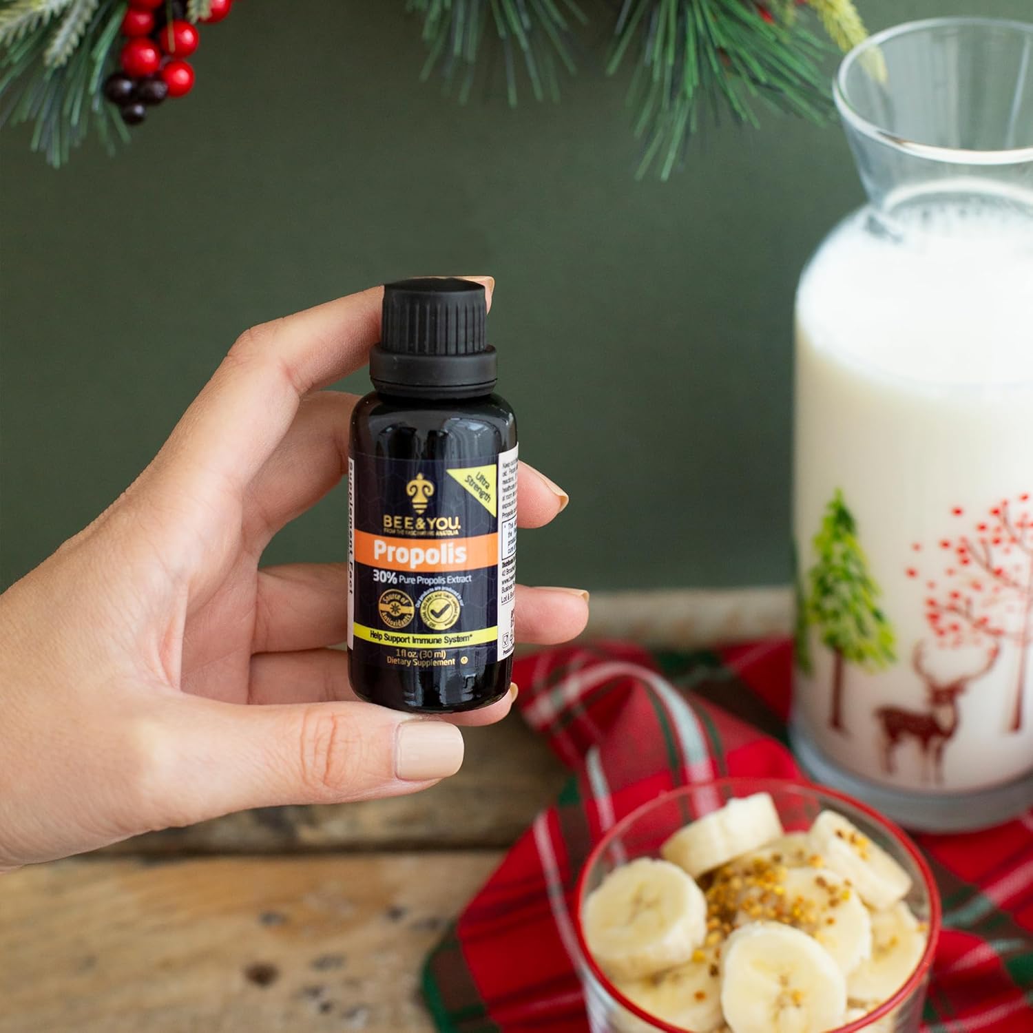 • ANATOLIAN PROPOLIS EXTRACT: Propolis is a natural product that honeybees collect from plants, such as leaves, buds, and stems. We obtain our propolis from our own contracted beehives in the pristine Anatolian mountains, which are known for their diverse plant life, with 12,000 different species. BEE&YOU also has a patented extraction technology to extract all the antioxidants resulting in a product that contains at least 100x more antioxidants than the highest-grade Manuka Honey. Made in Türkiye.