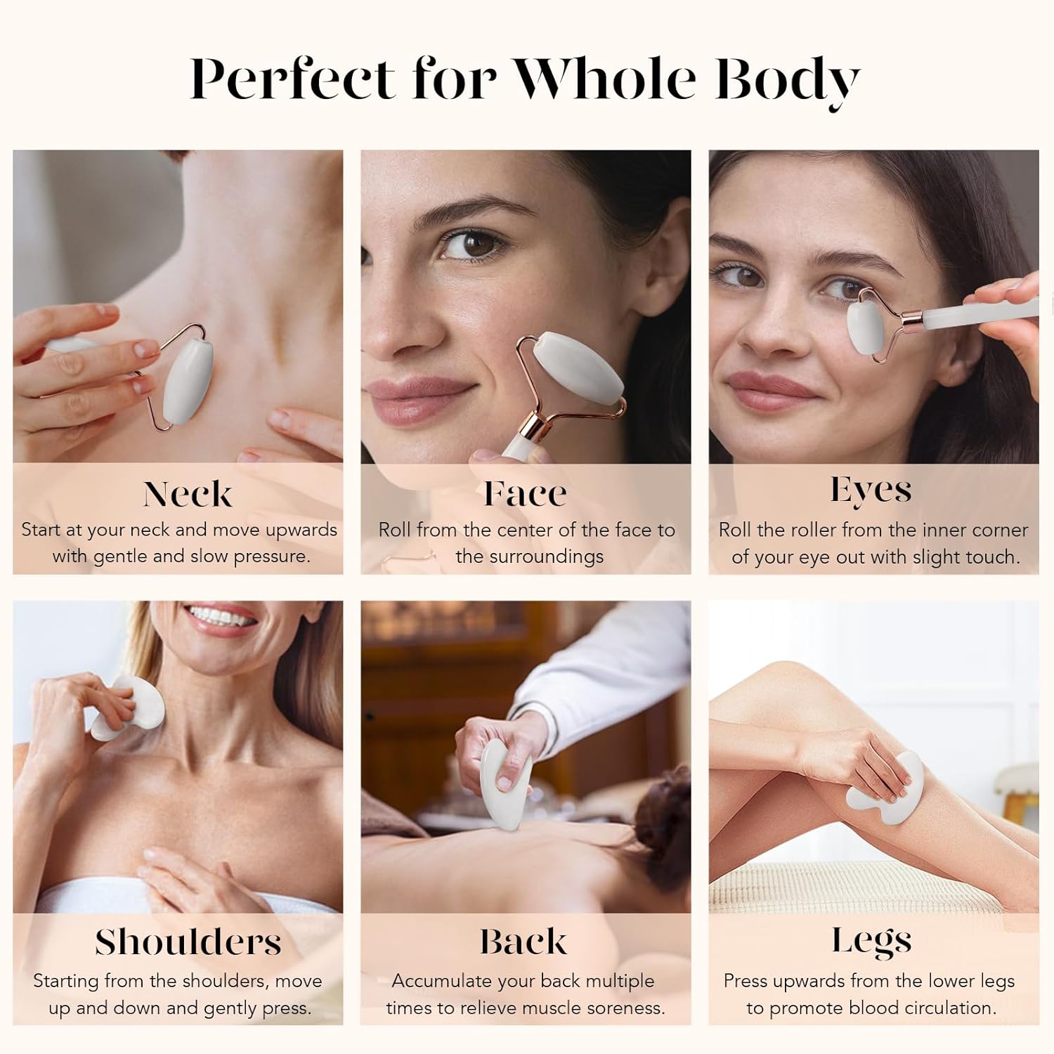 • [Elegant Packaging] The face roller and guasha packaged in a beautiful gift box, it also be used as self care gifts for women. We suggest you wash the skincare tools for face after and before each use
