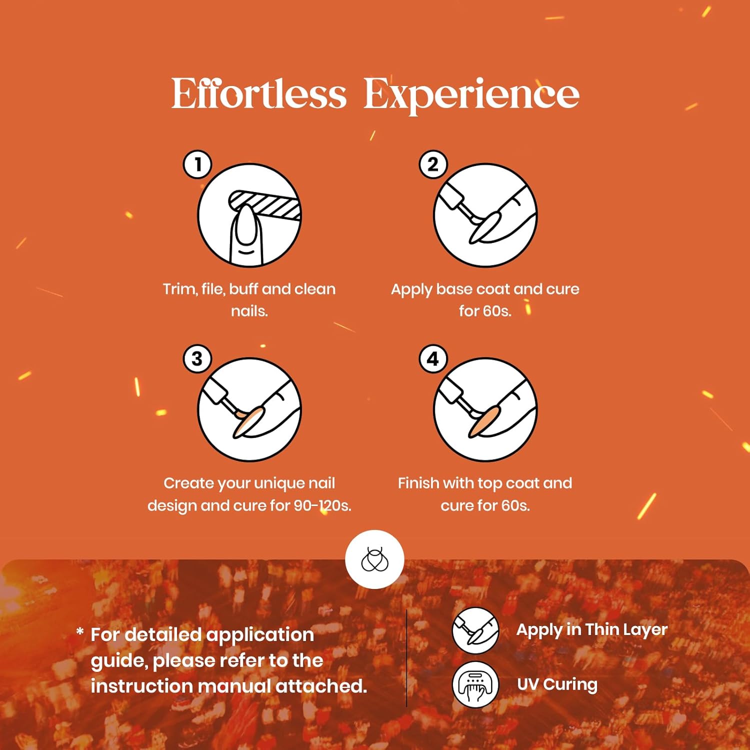 • DIY Home Mani Gel Nail Polish Kit: The kit features 20 Coffee Latte makeup colors, along with the Beetles base coat, matte and glossy gel top, all in one box! This "Cozy Campfire" spring summer gel nail polish set includes every must-have color. It covers an array of shades like yellow, orange, red, green, and glitter gel nail polish fall colors. Our color range complements any outfit you choose for your nails in this spring summer! It can also be given as a gift.