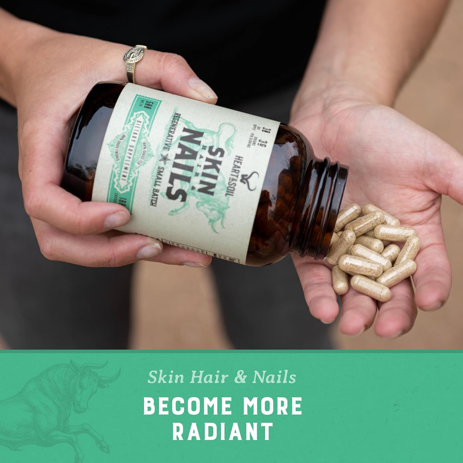 HEART & SOIL – 3000mg Skin, Hair and Nails Support Supplement with Grass Fed Beef Liver, Bone Marrow, Cartilage, Biotin, Collagen, Vitamins A, Riboflavin, Elastin – 180 Capsules