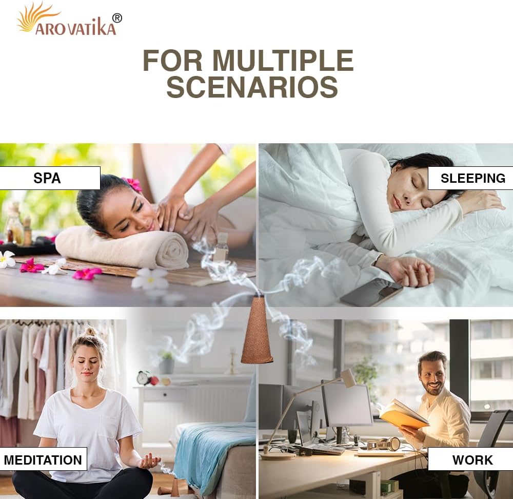 • ✅ HOW TO USE – Place one incense cone on a heat-resistant, fireproof surface or incense holder. Light the tip until it flames, then gently blow it out to allow it to smolder and release aromatic smoke. Use in a well-ventilated space and keep away from flammable materials and children.