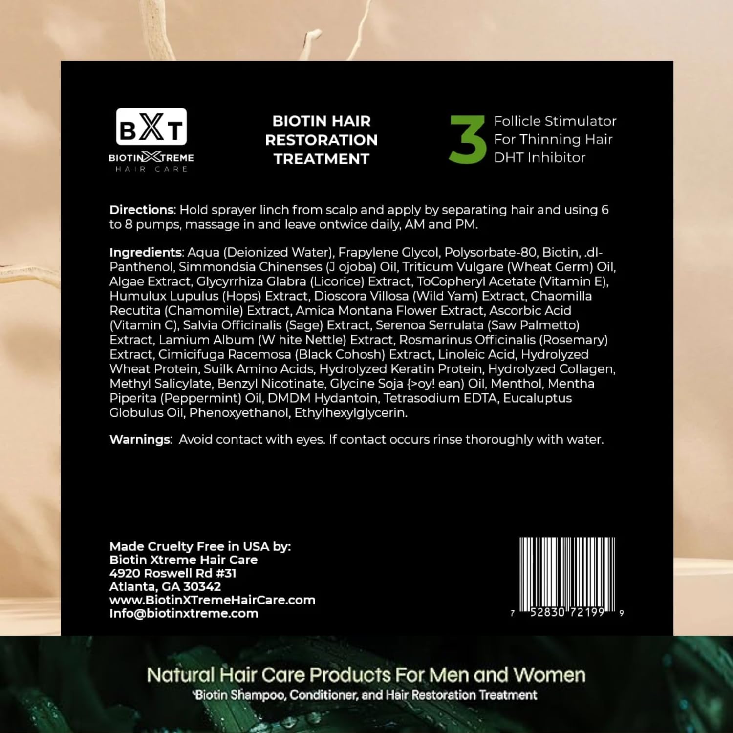 • Biotin X Treme: Our founders have over 30 years of experience in the hair care and hair loss industry. We have developed a range of natural biotin products with certified natural ingredients, vitamins and minerals that helps in preventing hair loss, restoring thinning hair and improving hair growth. Our products are designed to give you the best possible results, so you can maintain fuller, thicker hair and reclaim your hair's natural strength.