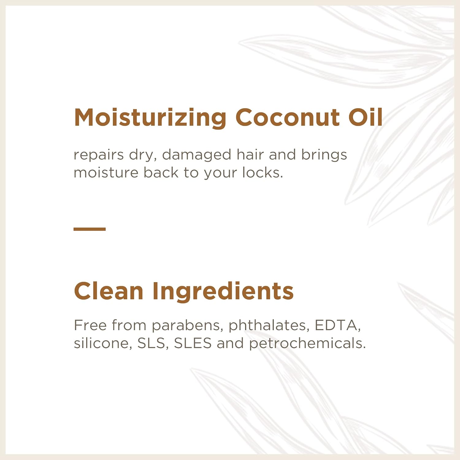 • MOISTURIZING SHAMPOO creates a rich lather with coconut oil and Vitamin E to tame frizz and promote soft-to-the-touch, ultra hydrated hair. Coconut oil helps bind hair to proteins to nourish and protect, shampoo creates a rich lather and rinses completely to leave hair soft and residue-free feeling