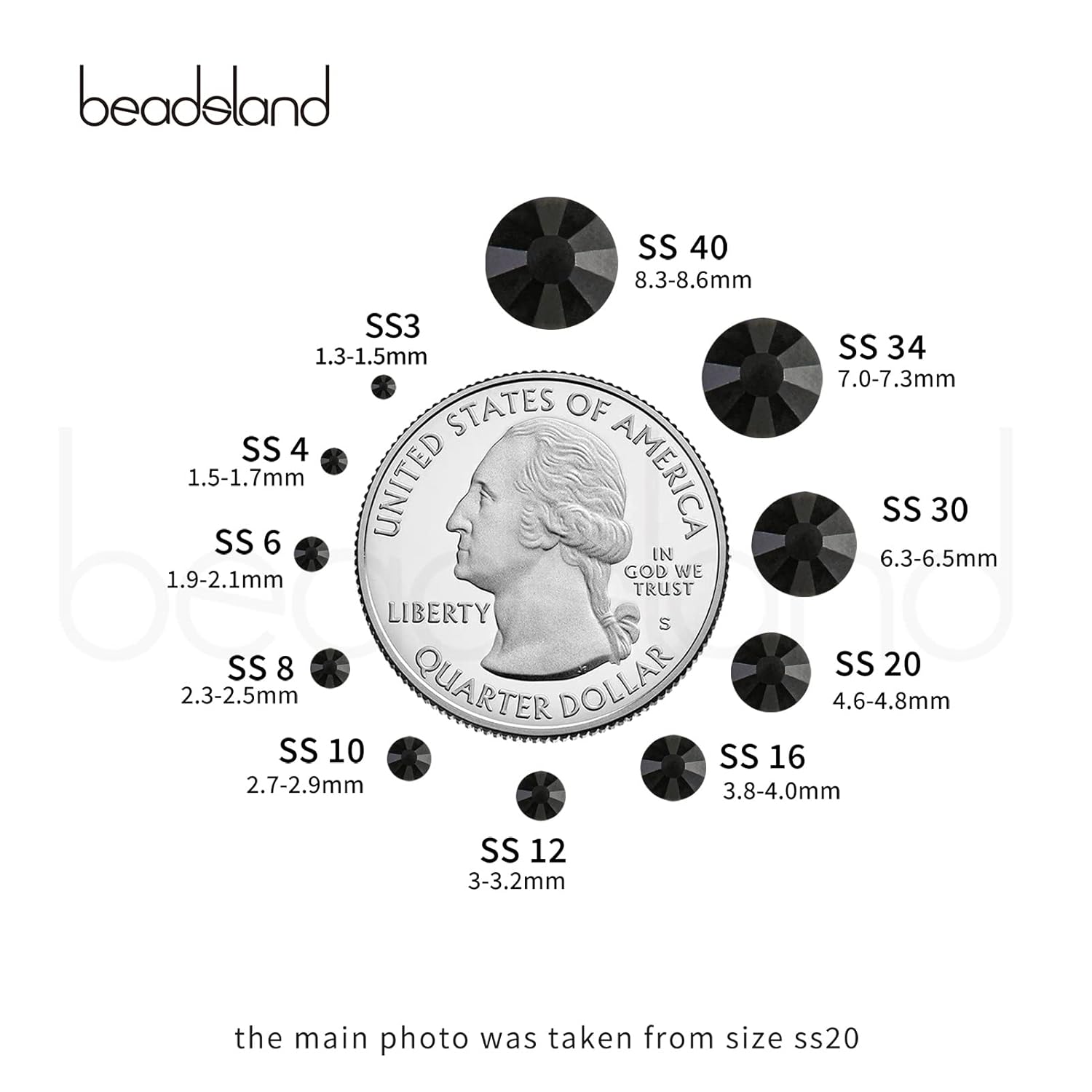 beadsland 1440 Piece Flat Back Crystal Rhinestones Round Gems,1.3mm-6.5mm, Black(SS16(3.8-4.0mm))
