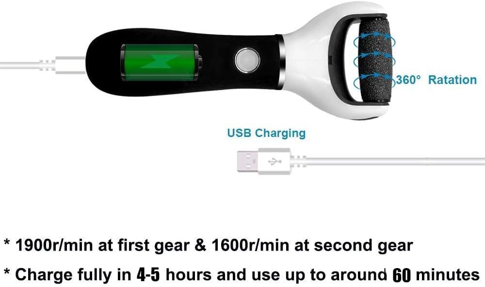 • Efficient to remove hard dead skin: Dual speeds of the gentle and forceful controls to remove callus and hard skin easily in minutes for good looking, elegant and sexy feet