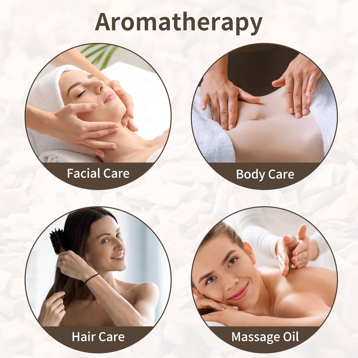 • 100% Pure organic jasmine, chamomile and sandalwood essential oil: no additives or fillers. Sandalwood essential oil extracted from Sandalwood's chipped heartwood and root, unique soft, rich, sweet, warm, woody aroma.