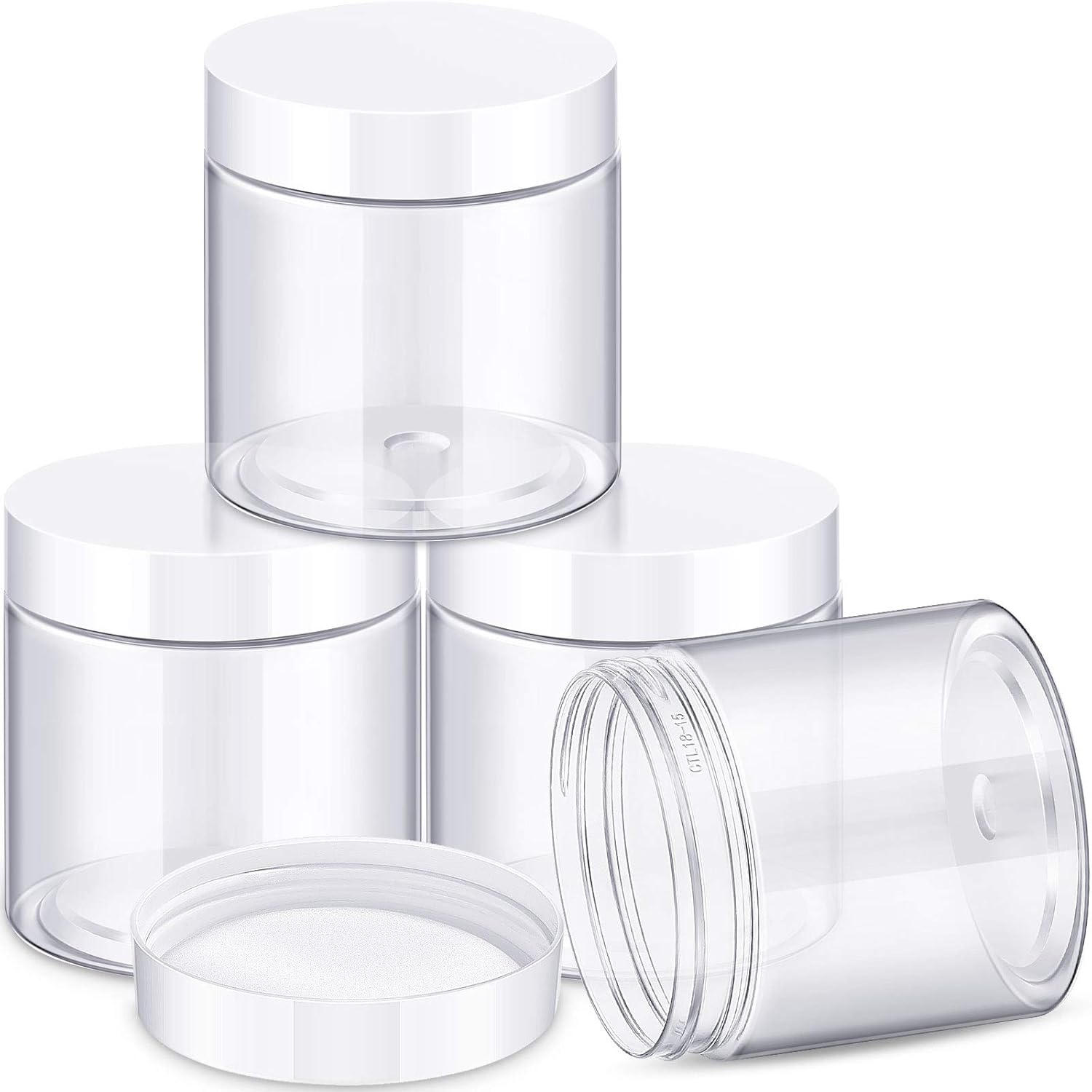 Patelai 4 Pieces Round Wide-mouth Leak Proof Plastic Container Jars with Lids for Travel Storage Makeup Beauty Products Face Creams Oils Salves Ointments DIY Making(8 Ounce,White)
