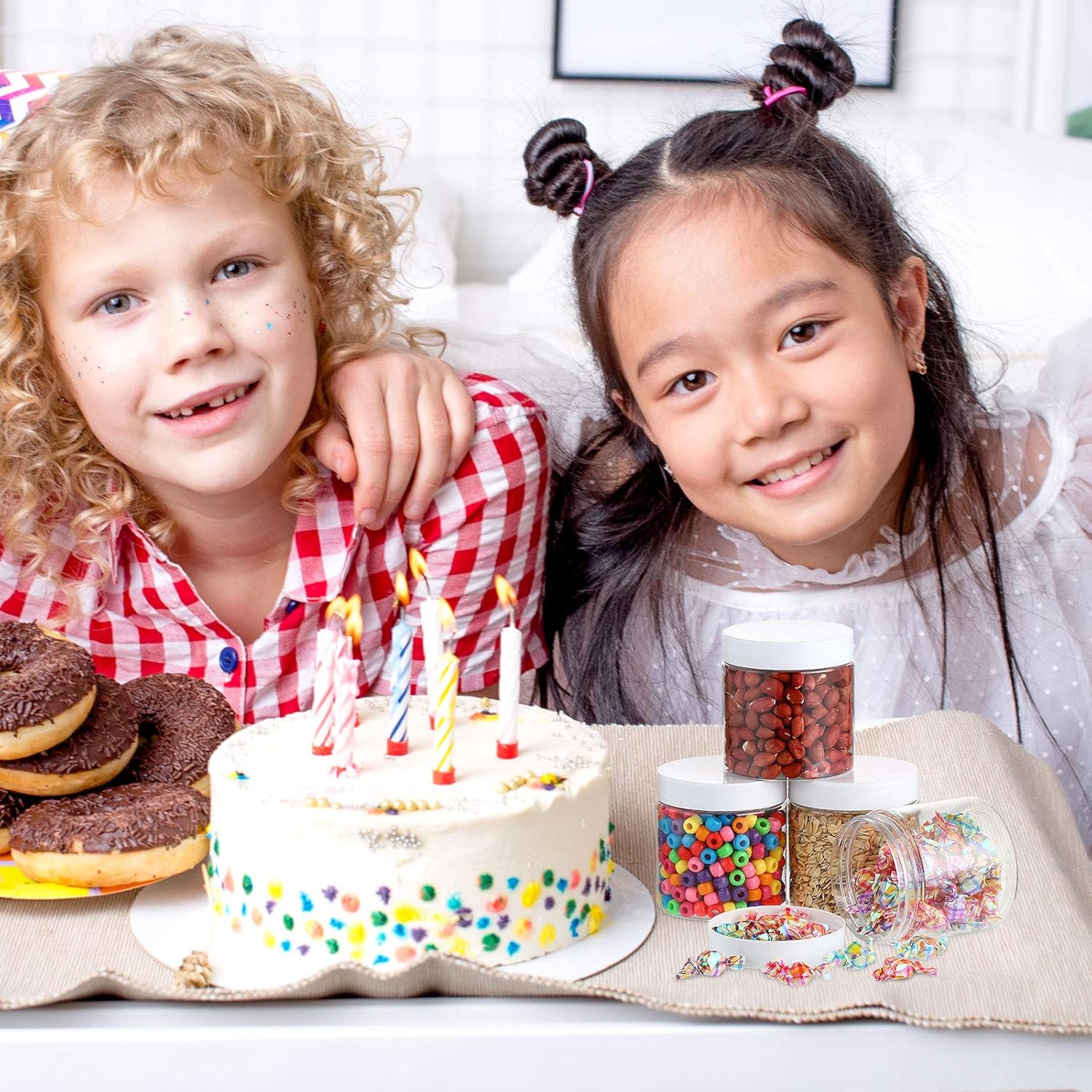 • What you receive: there are 4 pieces plastic jars with white screw-on lids. They are durable and refillable, measuring about 5.2 cm/ 2.05 inches in diameter, 4.3 cm/ 1.7 inches in height
