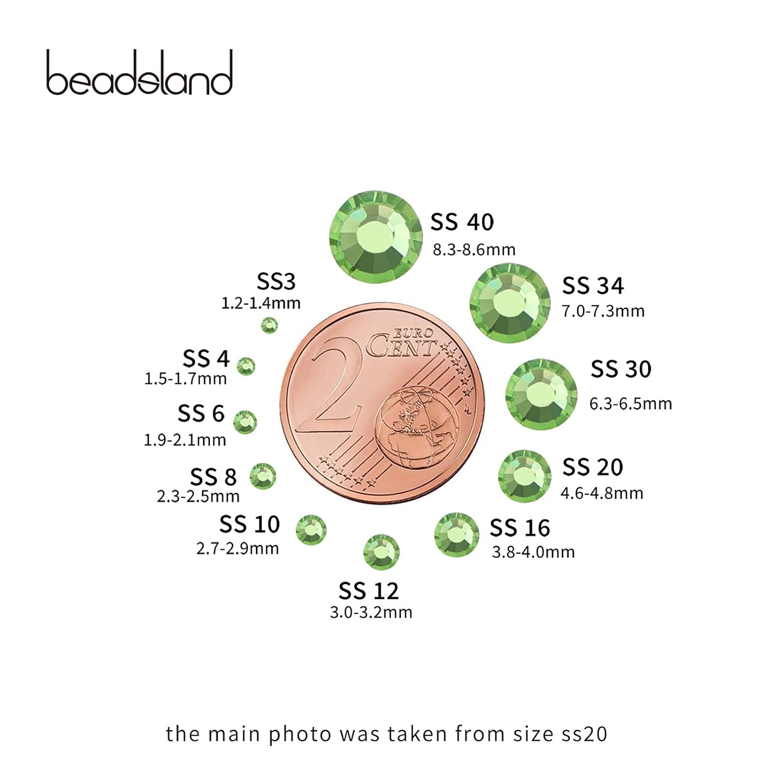Beadsland 1440pcs Flat Back Crystal Rhinestones Round Gems for Nail Art and Craft Glue Fix,Light Green,SS20,4.6-4.8mm
