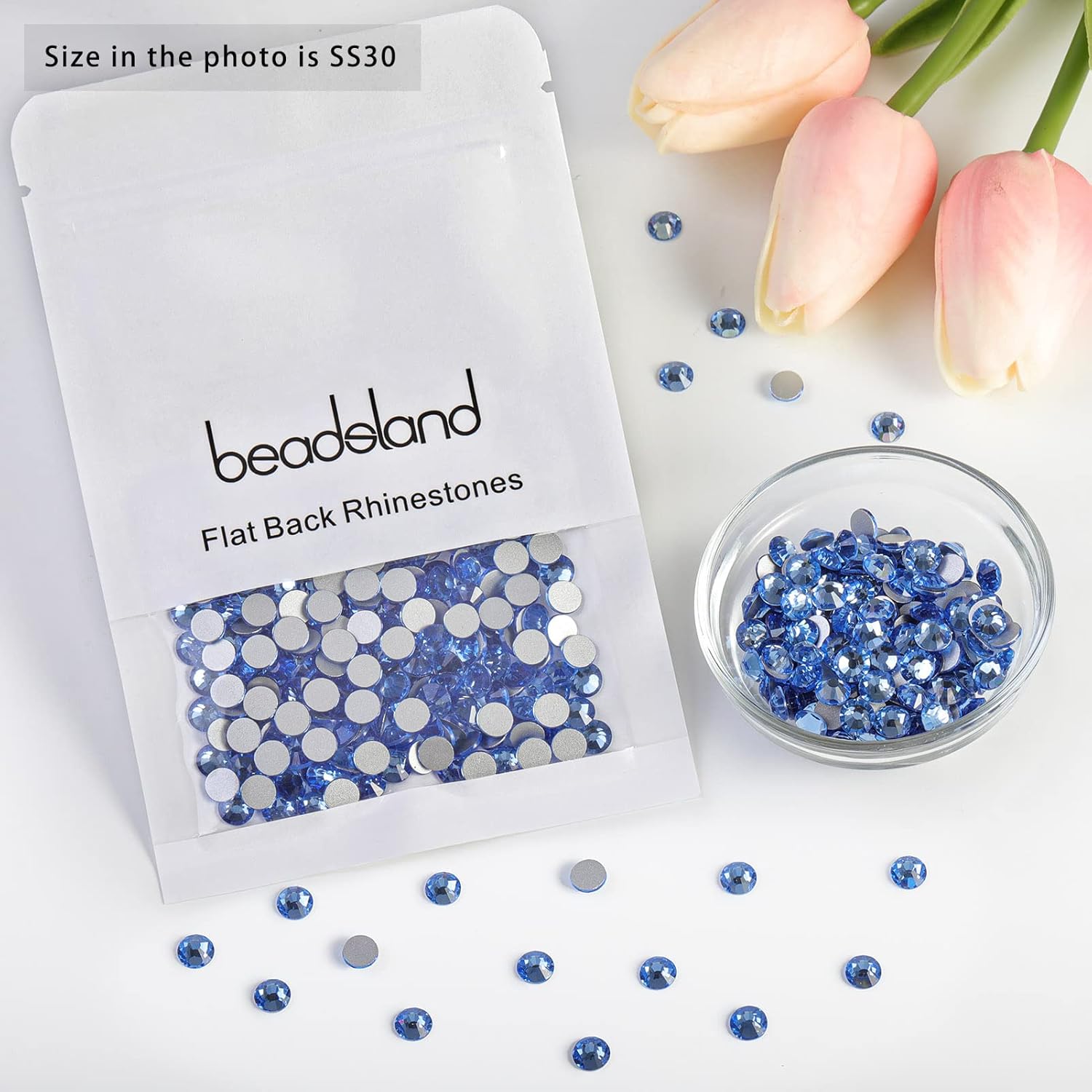 beadsland Flat Back Crystal Rhinestones Round Gems for Nail Art and Craft Glue Fix,Light Blue (6.4-6.6mm) SS30/288pcs