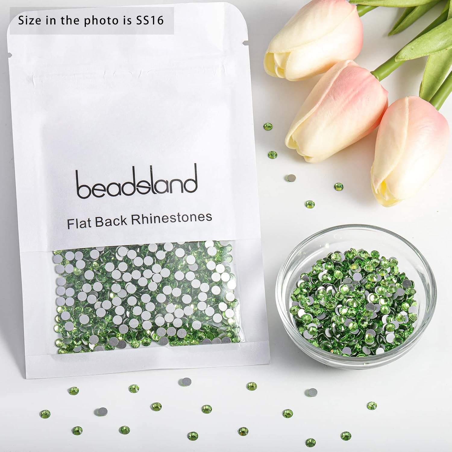 Beadsland 1440pcs Flat Back Crystal Rhinestones Round Gems for Nail Art and Craft Glue Fix,Light Green,SS16,3.8-4.0mm