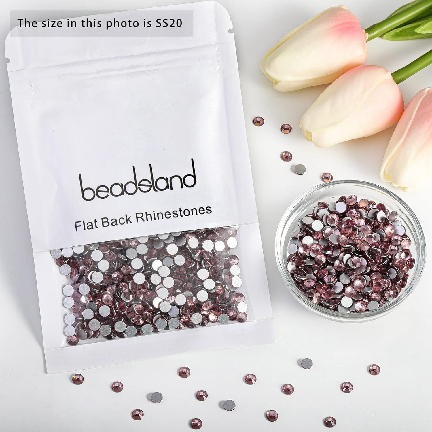 beadsland Flat Back Crystal Rhinestones Round Gems for Nail Art and Craft Glue Fix,Light Purple (4.6-4.8mm) SS20/1440pcs