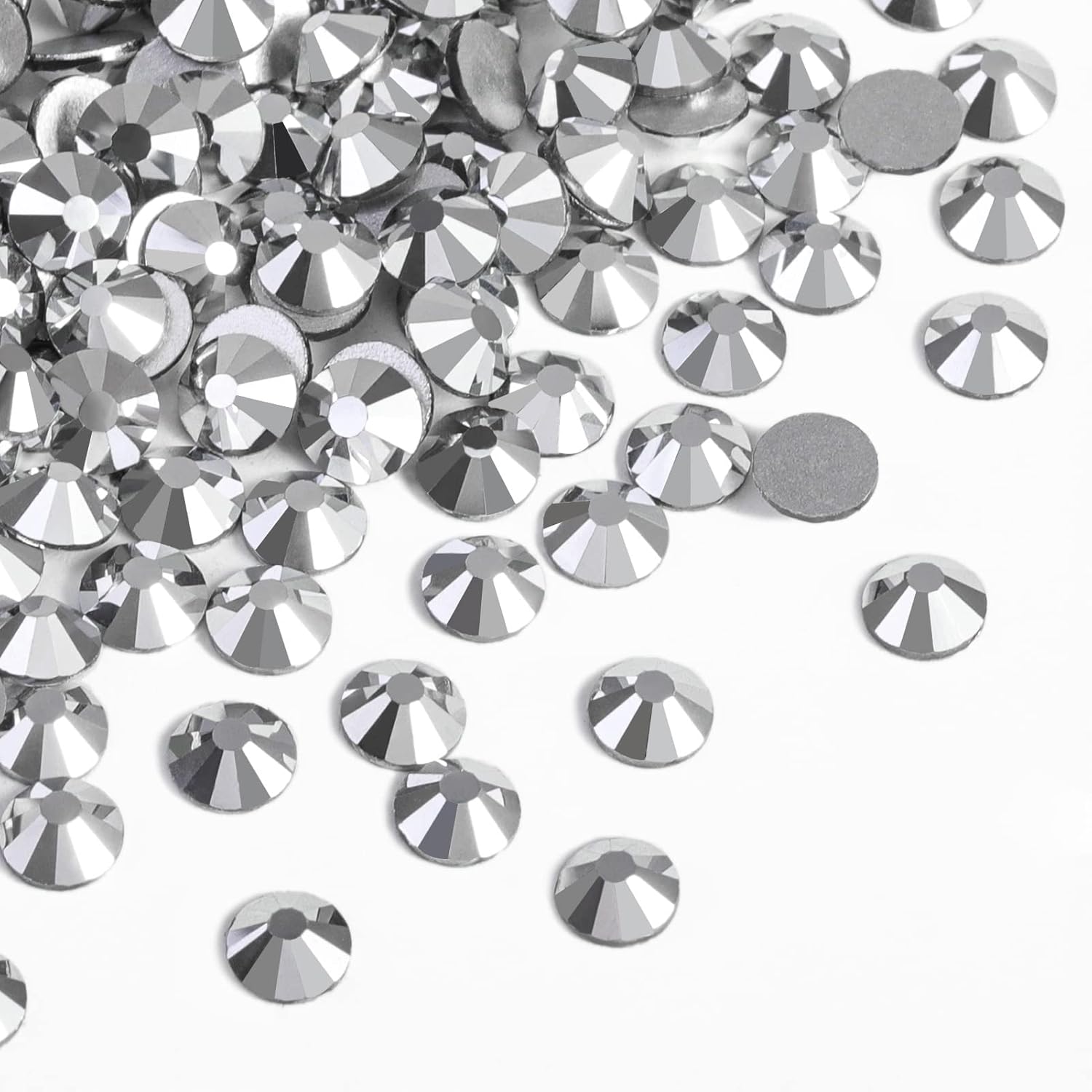 beadsland Flat Back Crystal Rhinestones Round Gems for Nail Art and Craft Glue Fix, Silver Hematite (2.3-2.5mm) SS8/1440pcs