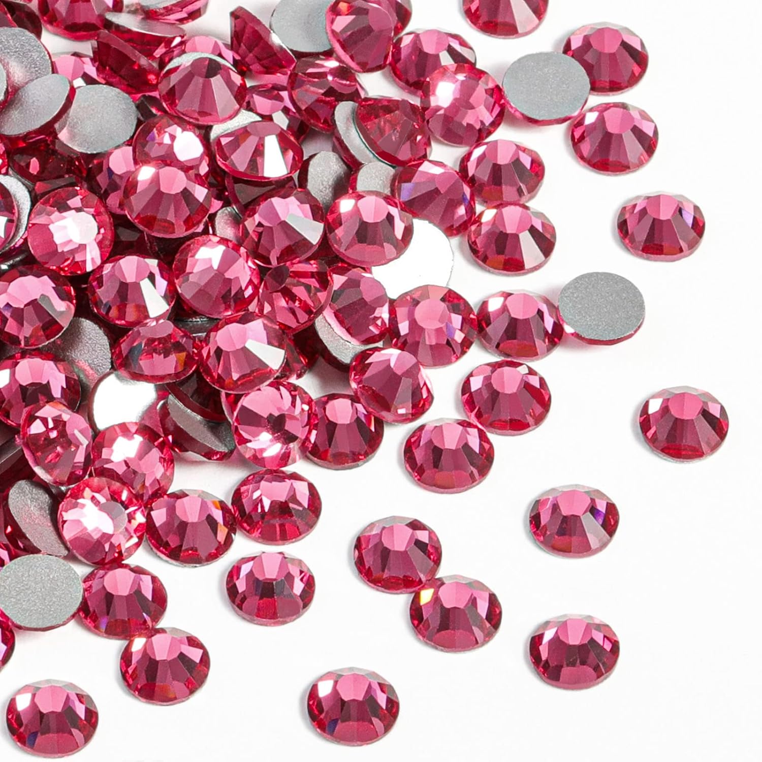 beadsland Flat Back Crystal Rhinestones Round Gems for Nail Art and Craft Glue Fix, Rose, (2.3-2.5mm) SS8/1440pcs