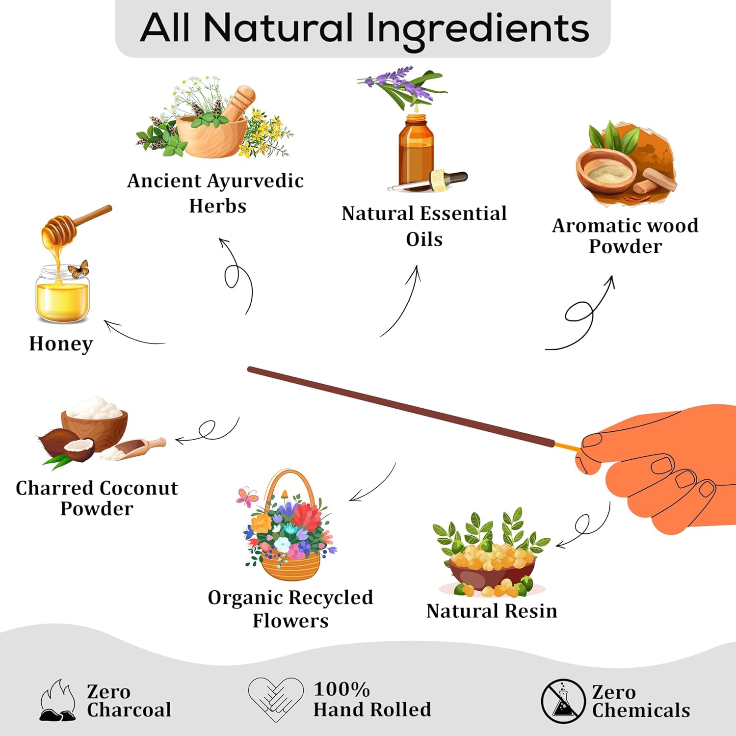 • Guarantee 100% natural incense sticks chemical free organic, pure herbal ingredients without any chemical fragrance. You can free return for any reason.